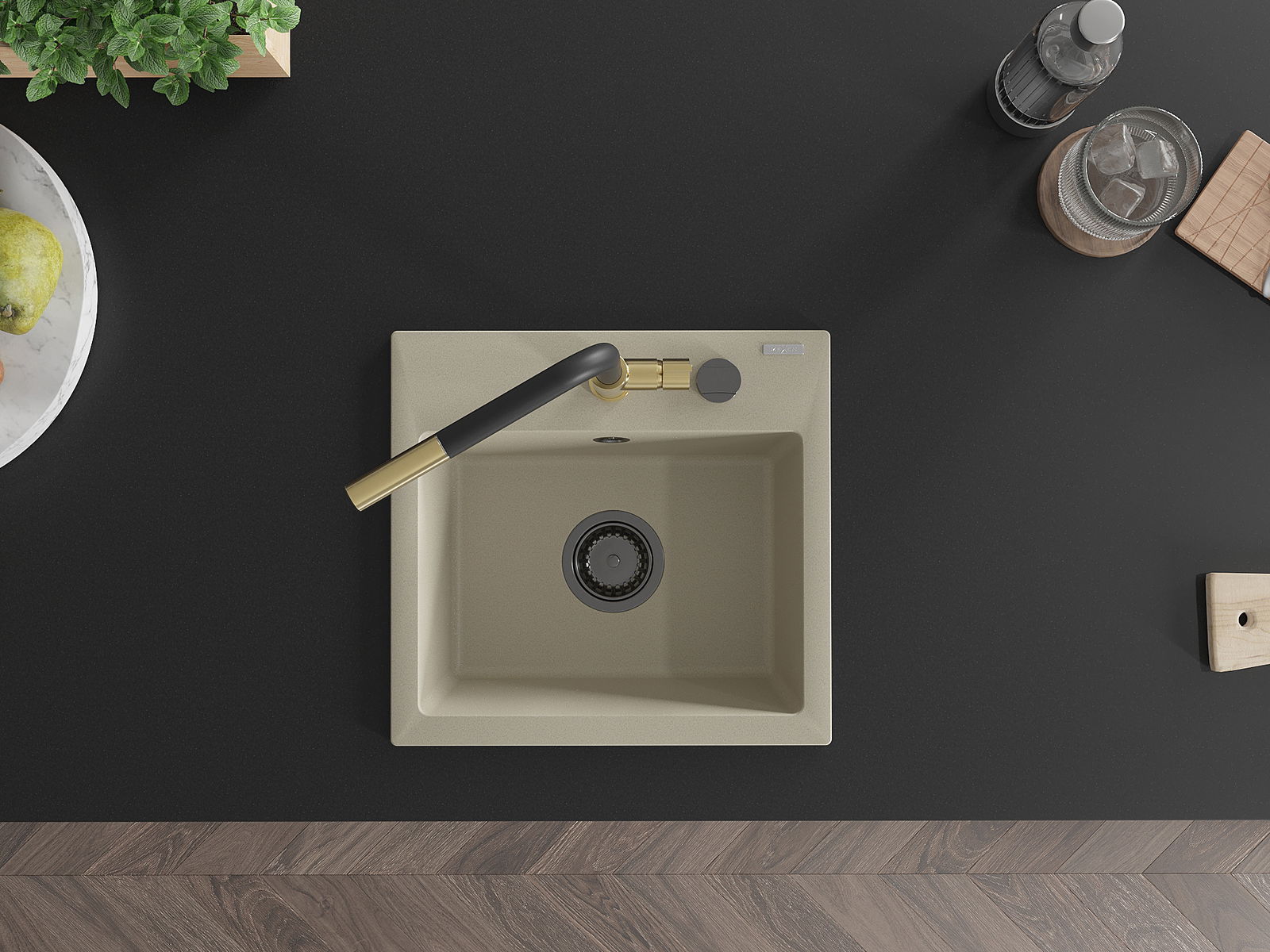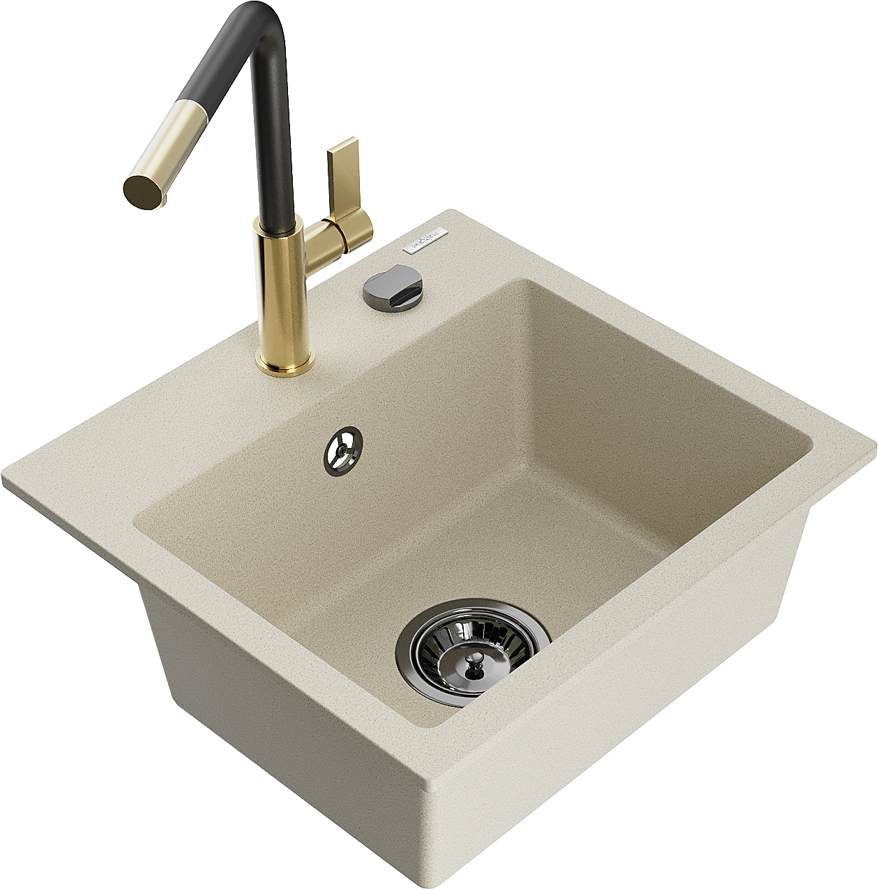 Mexen Milo egymedencés gránit mosogató Flora konyhai csapteleppel, bézs - 6505-69-670401-57-B