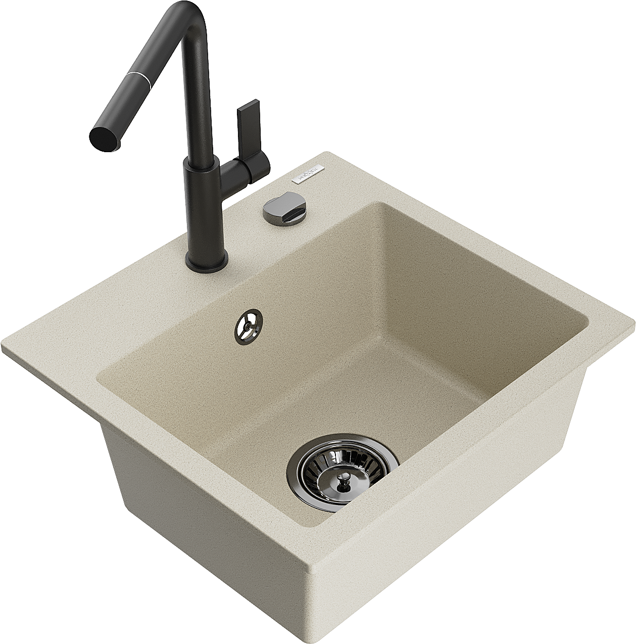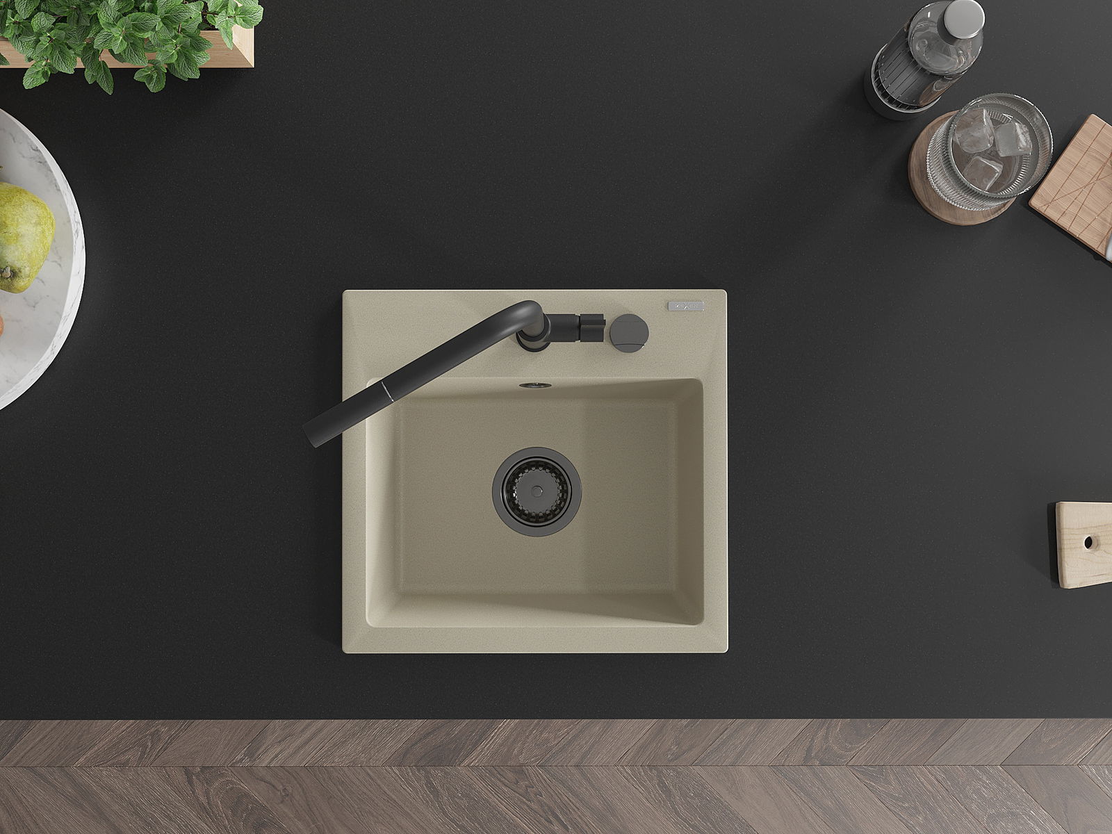 Mexen Milo 1-medencés gránit mosogató Flora konyhai csapteleppel, bézs - 6505-69-670401-70-B