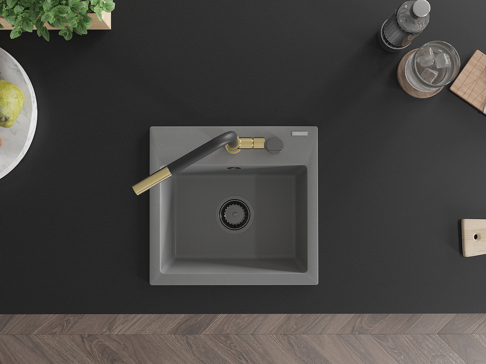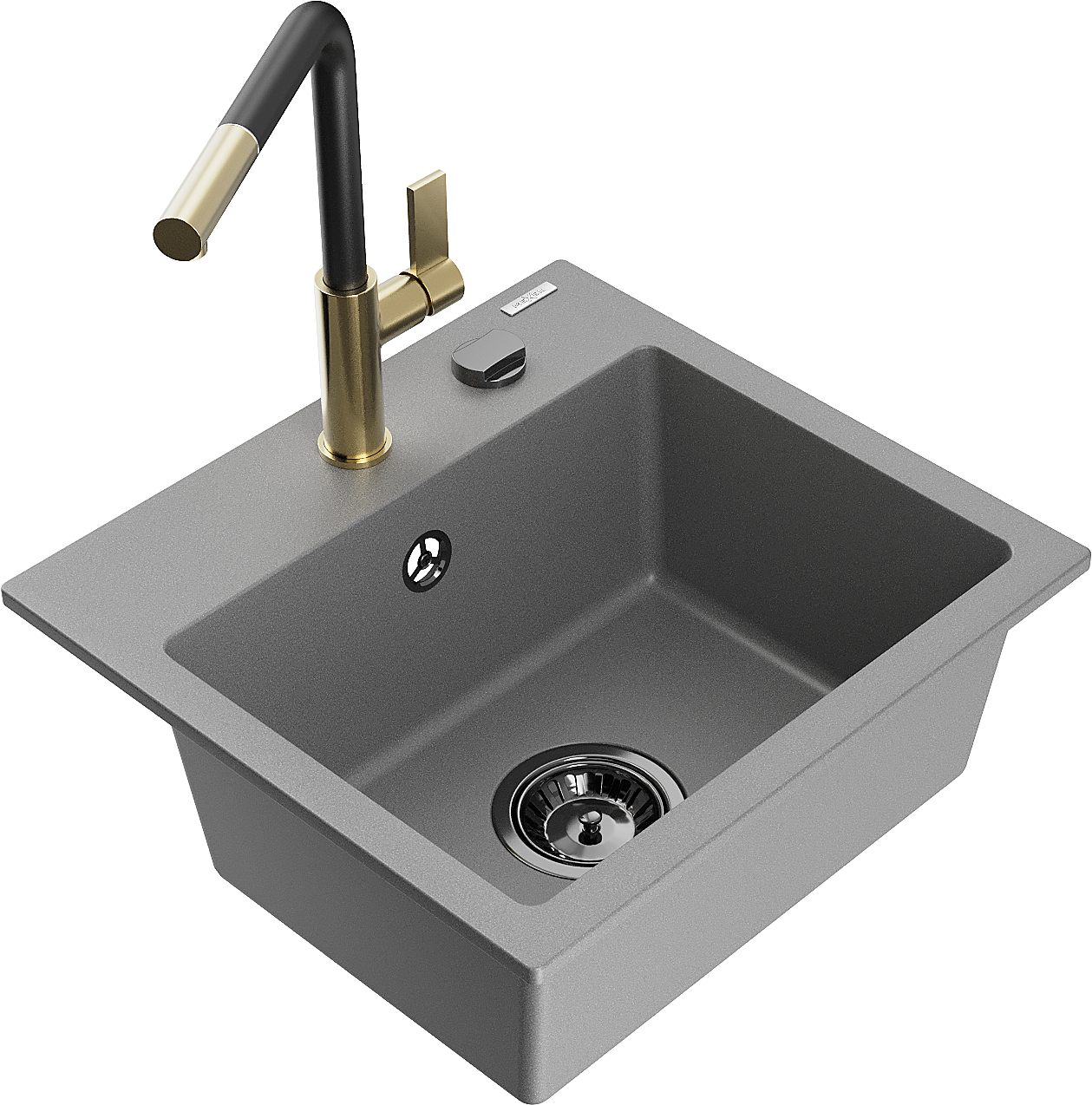 Mexen Milo egymedencés gránit mosogató Flora konyhai csapteleppel, szürke - 6505-71-670401-57-B