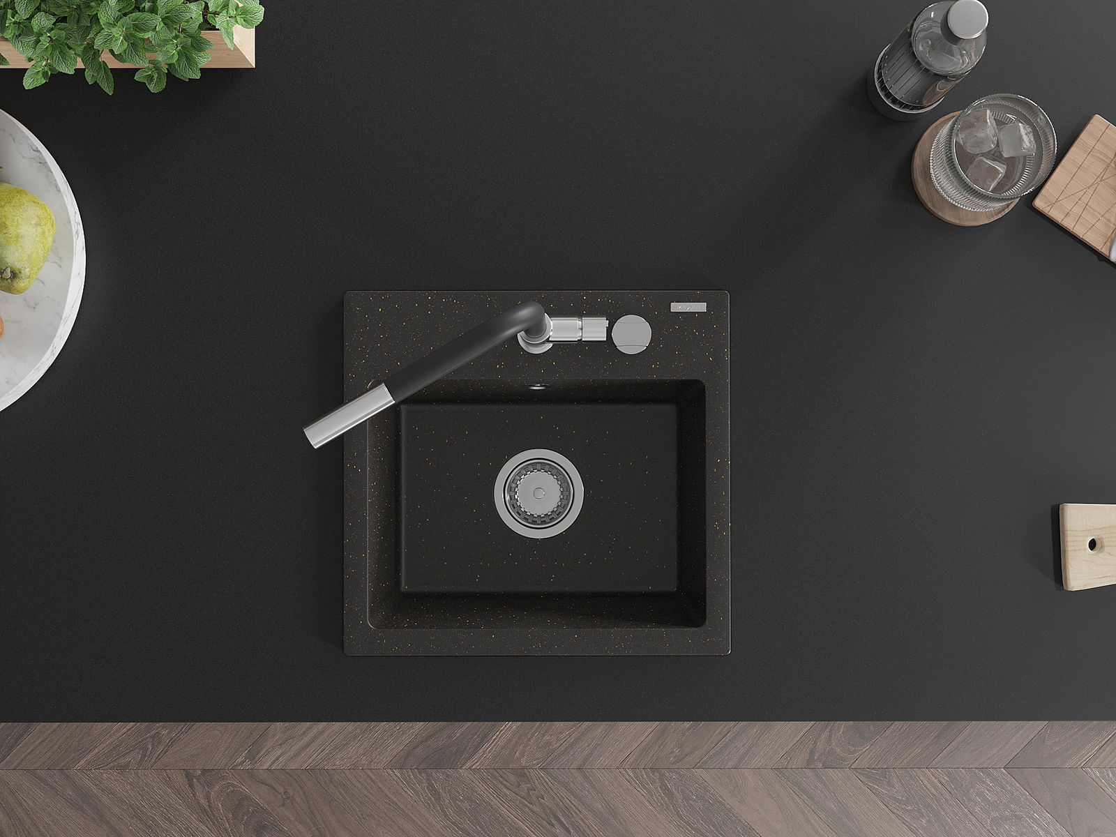 A mosogató kiváló minőségű gránitból készül. Ez egy elegáns és mindenekelőtt minden konyhához praktikus kiegészítés, stílusától függetlenül. A kiváló minőségű és a gránit tartósság biztosítja a sok éves használatát.