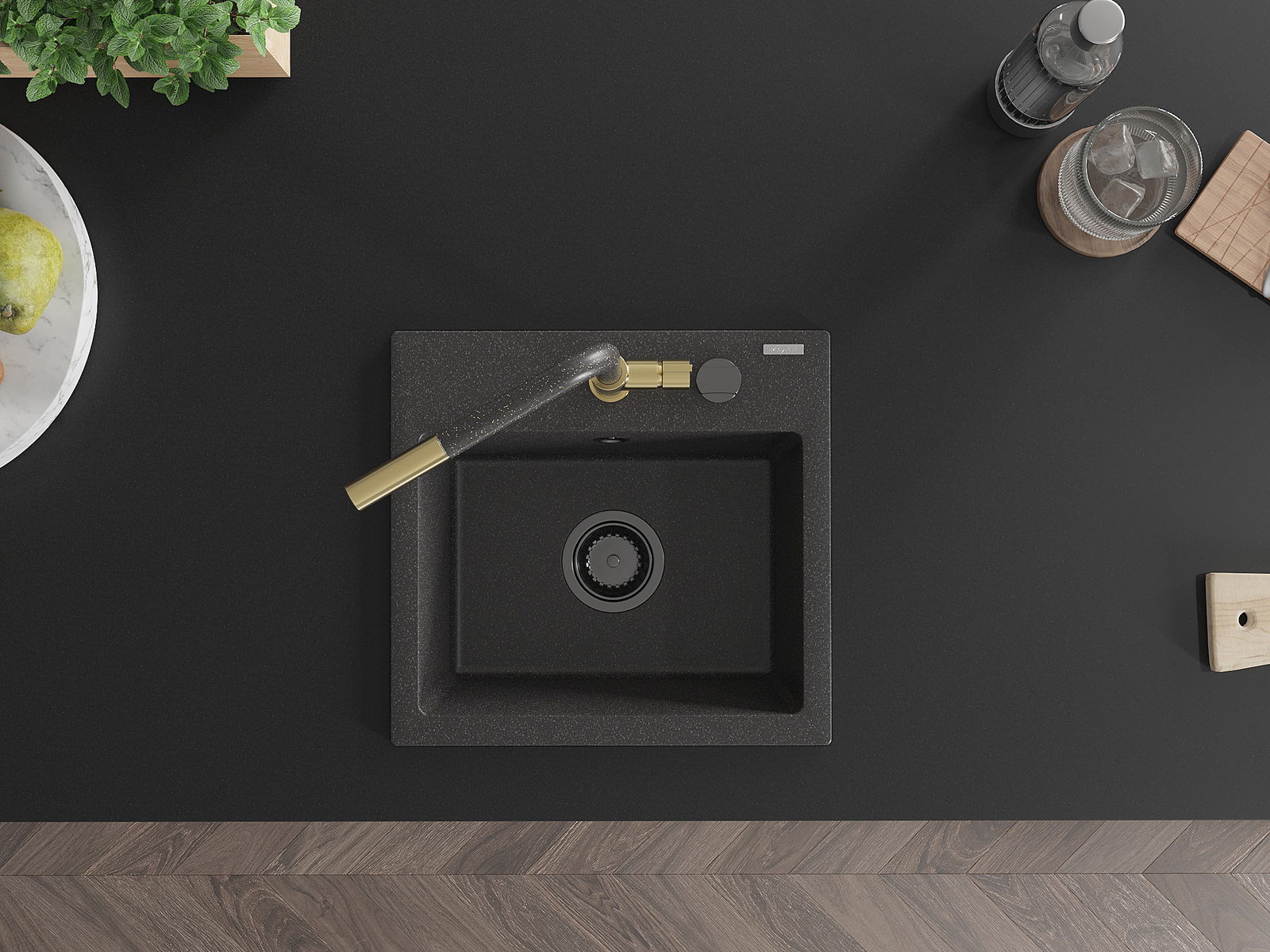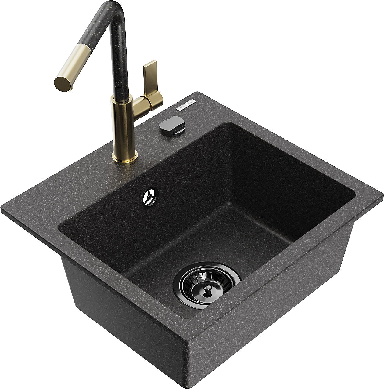 Mexen Milo 1-medencés gránit mosogató Flora konyhai csapteleppel, fekete pöttyös - 6505-76-670401-75-B
