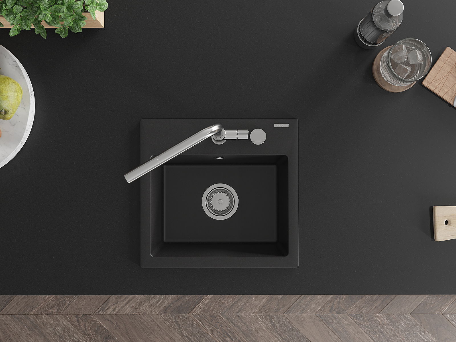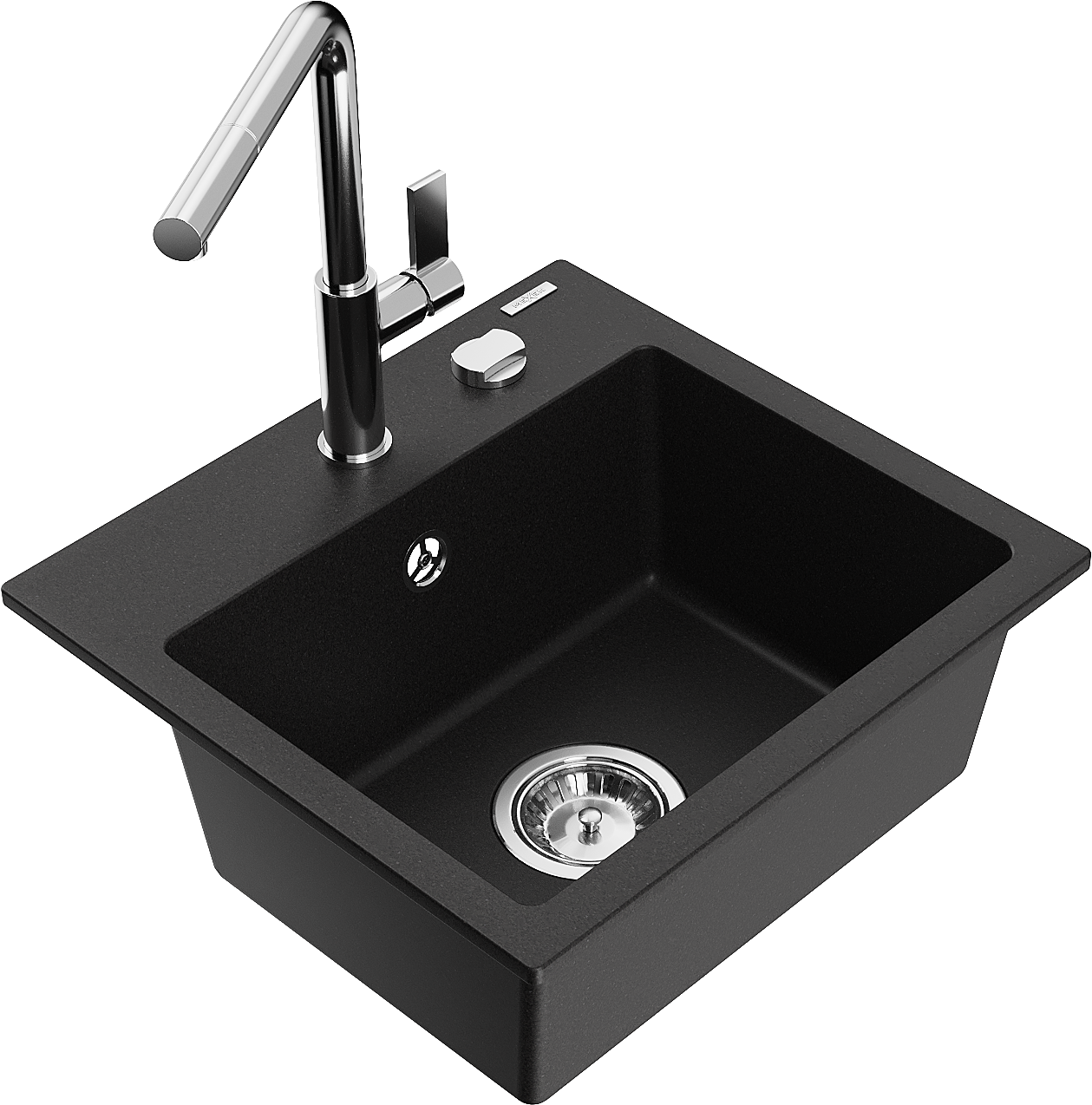 Mexen Milo 1-medencés gránit mosogató Flora konyhai csapteleppel, fekete - 6505-77-670401-00