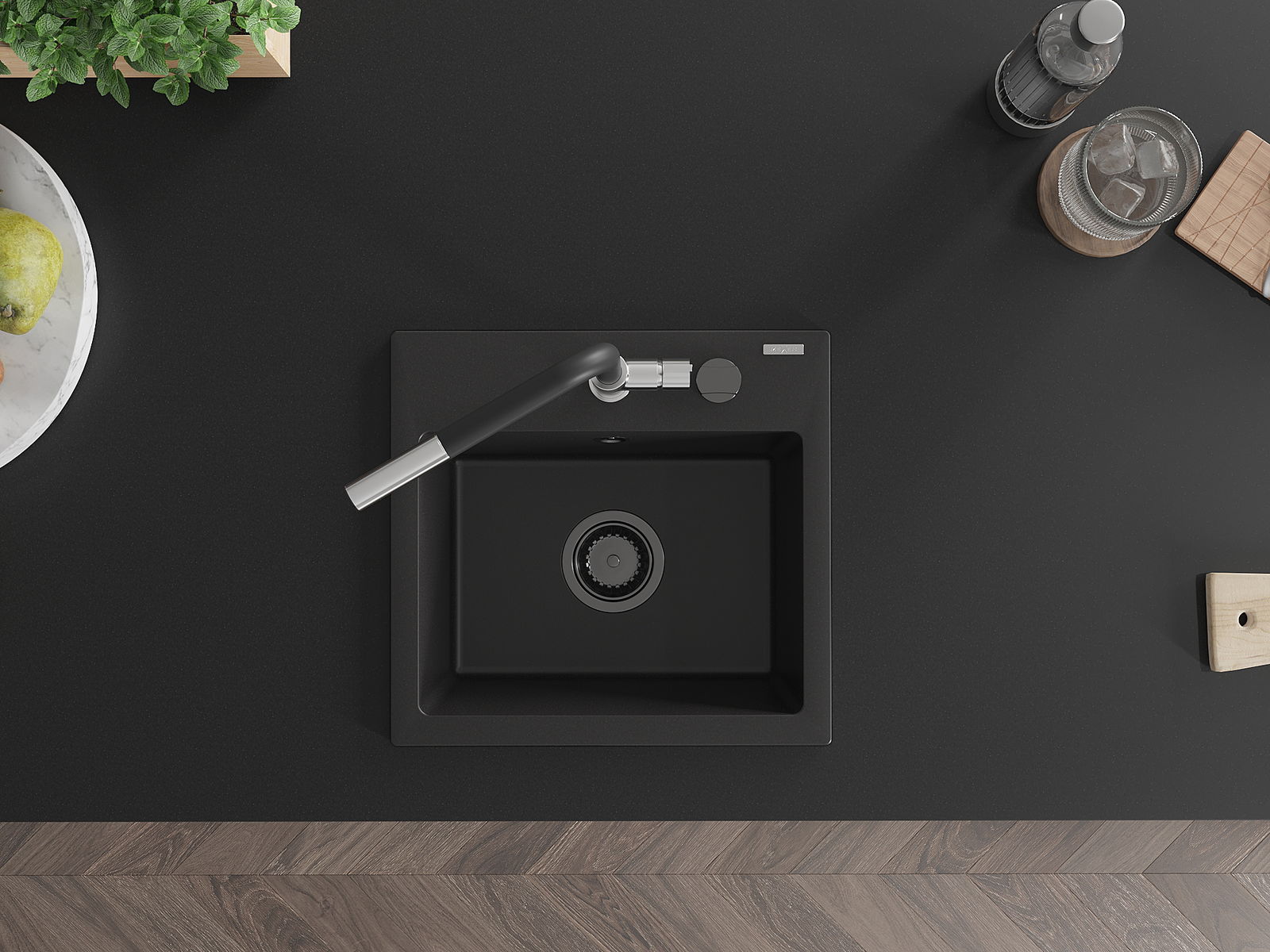 Mexen Milo 1-medencés gránit mosogató Flora konyhai csappal, fekete - 6505-77-670401-07-B