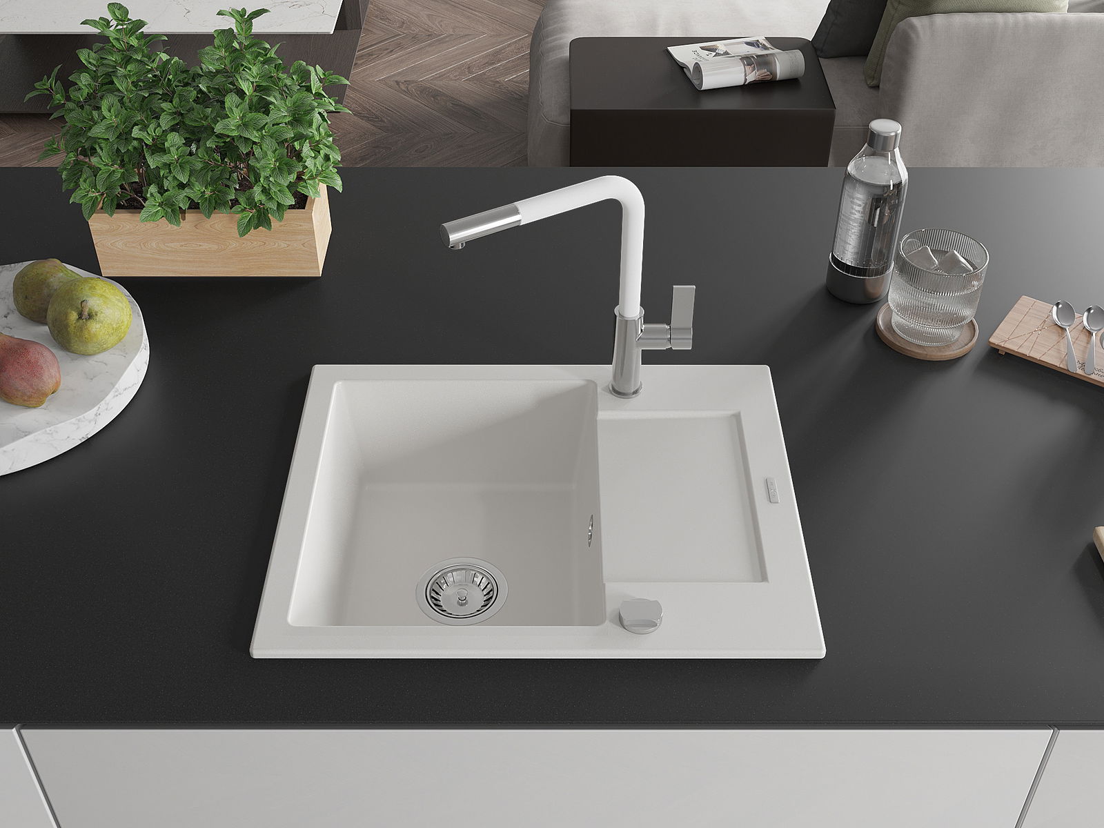 A mosogató felülete ellenáll a foltoknak és a elszíneződésnek, amelynek köszönhetően könnyű megtisztítani és hosszú ideig megtartja színét. Esztétikai és gyakorlatilag kiegészítve minden konyhát.