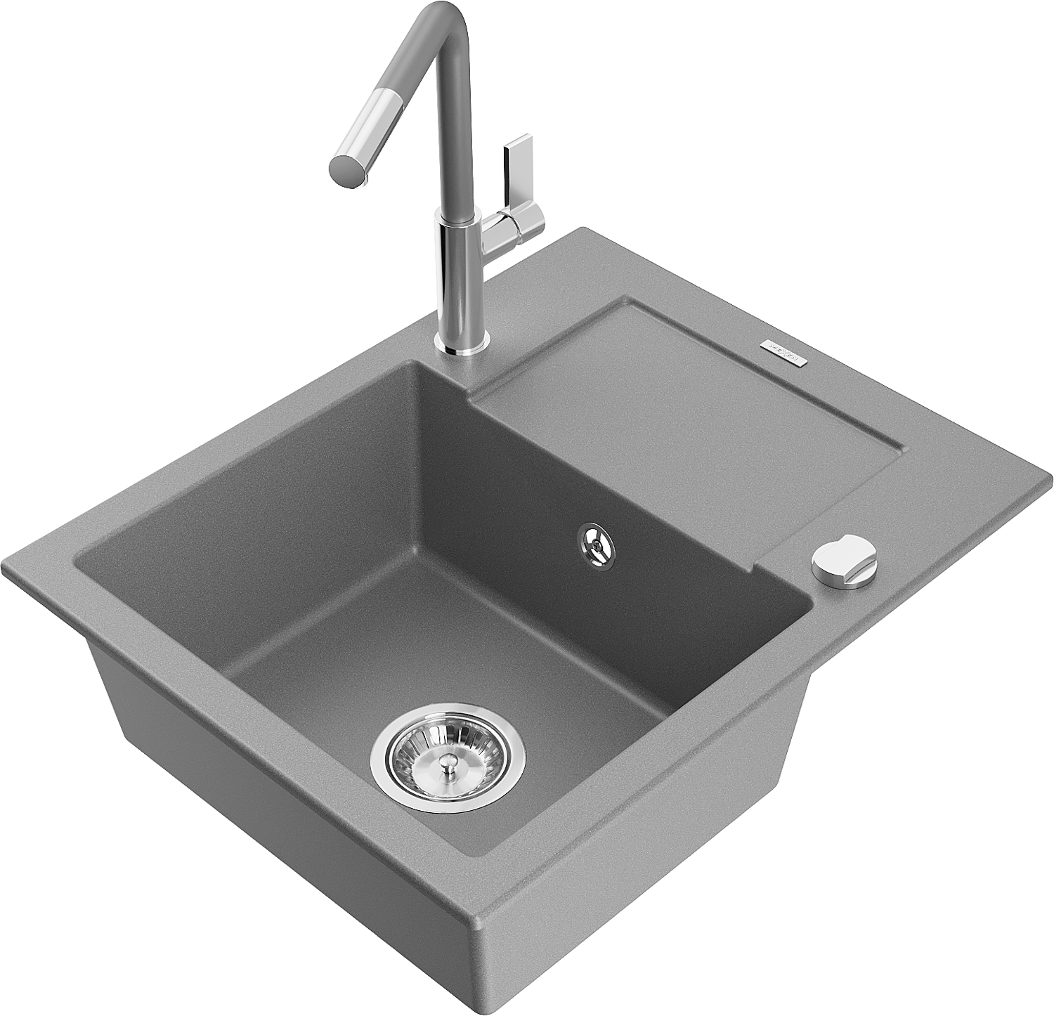 Mexen Enzo 1 rekeszes gránit mosogató lefolyóval és Flora konyhai csapteleppel, szürke - 6506-71-670401-06