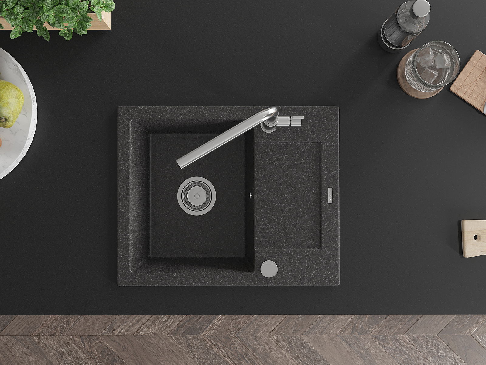 A mosogató kiváló minőségű gránitból készül. Ez egy elegáns és mindenekelőtt minden konyhához praktikus kiegészítés, stílusától függetlenül. A kiváló minőségű és a gránit tartósság biztosítja a sok éves használatát.