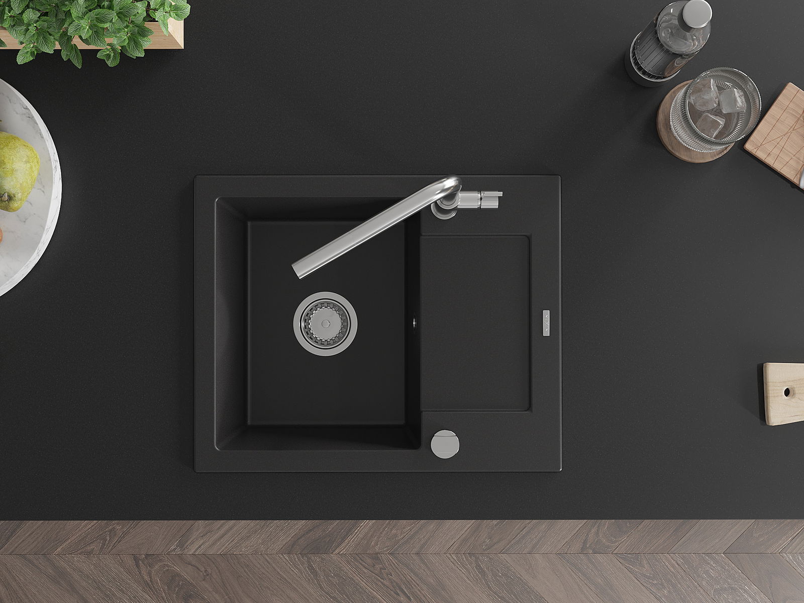 A mosogató magas minőségű gránitból készült. Elegáns, de mindenekelőtt praktikus kiegészítője minden konyhának, függetlenül annak stílusától. A gránit magas minősége és tartóssága hosszú távú használatot biztosít.