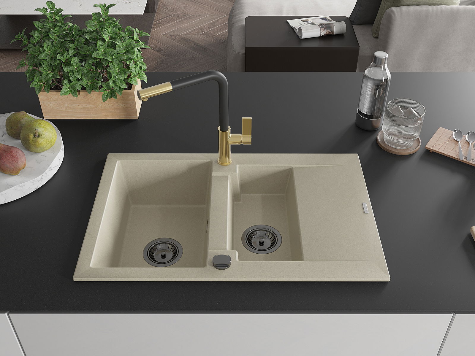 A mosogató kiváló minőségű gránitból készül. Ez egy elegáns és mindenekelőtt minden konyhához praktikus kiegészítés, stílusától függetlenül. A kiváló minőségű és a gránit tartósság biztosítja a sok éves használatát.