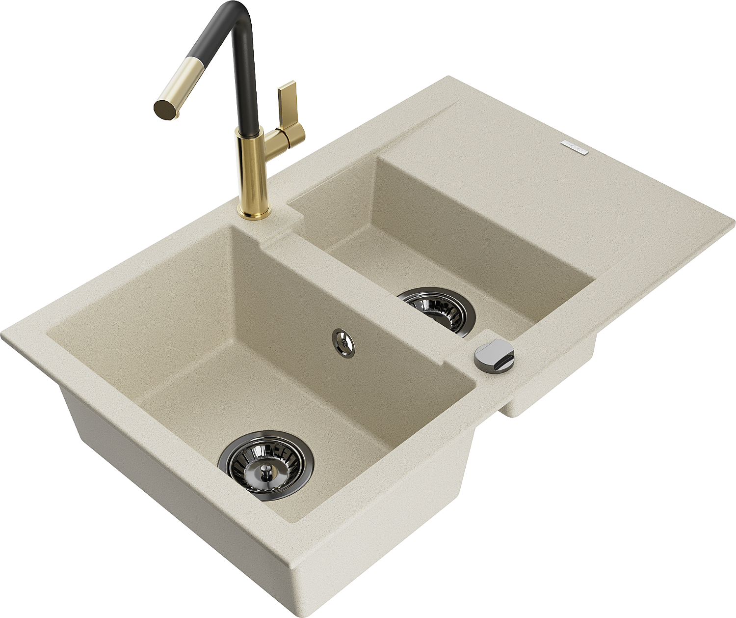 Mexen Gaspar gránit mosogató 1,5 rekeszes csepegtetővel és Flora konyhai csappal, bézs - 6507-69-670401-57-B
