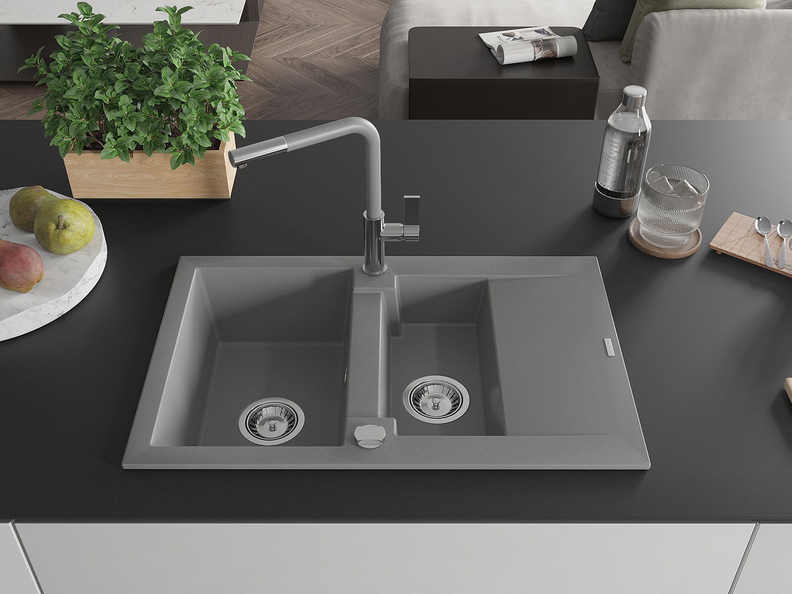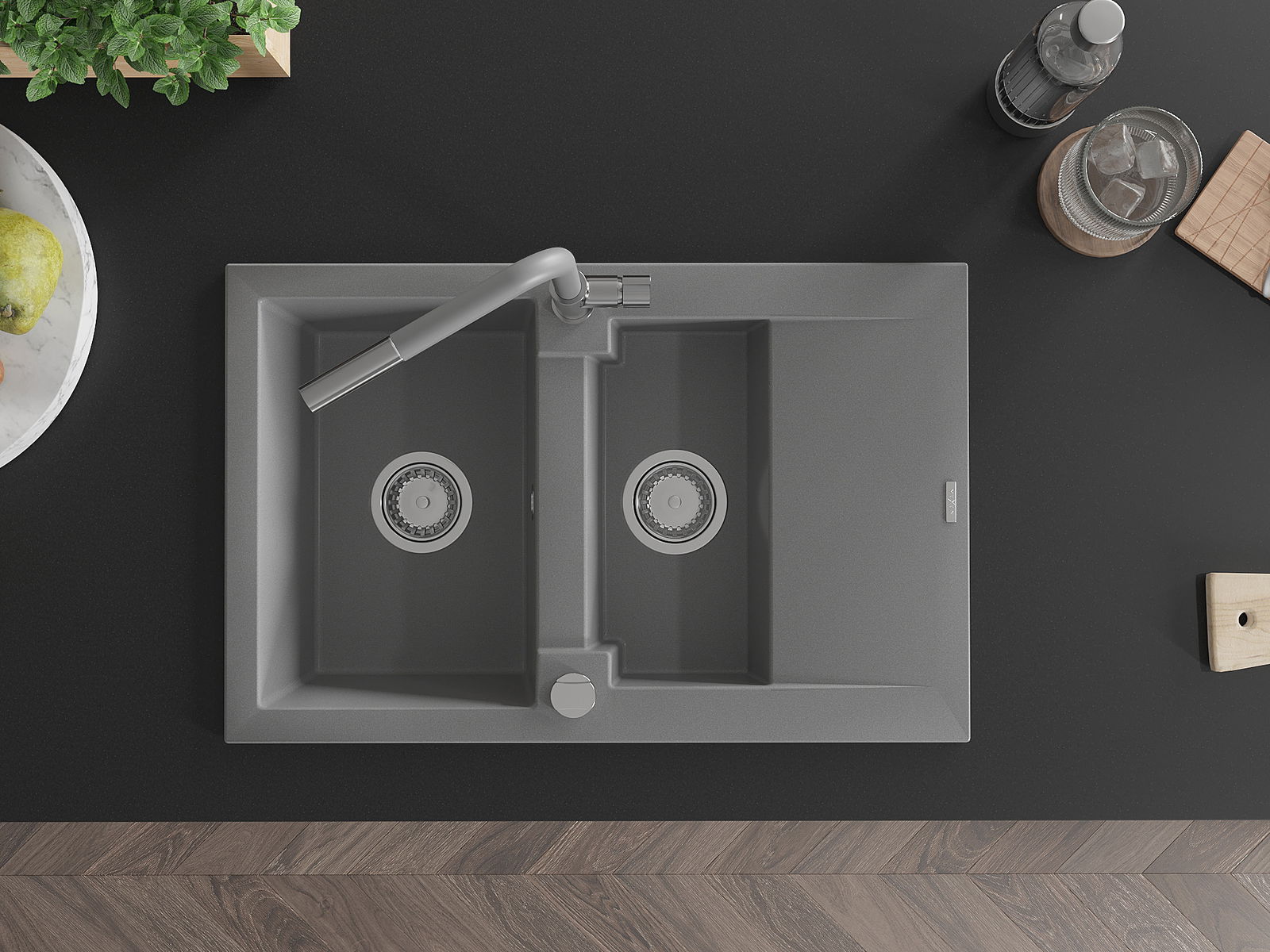 A mosogató kiváló minőségű gránitból készül. Ez egy elegáns és mindenekelőtt minden konyhához praktikus kiegészítés, stílusától függetlenül. A kiváló minőségű és a gránit tartósság biztosítja a sok éves használatát.