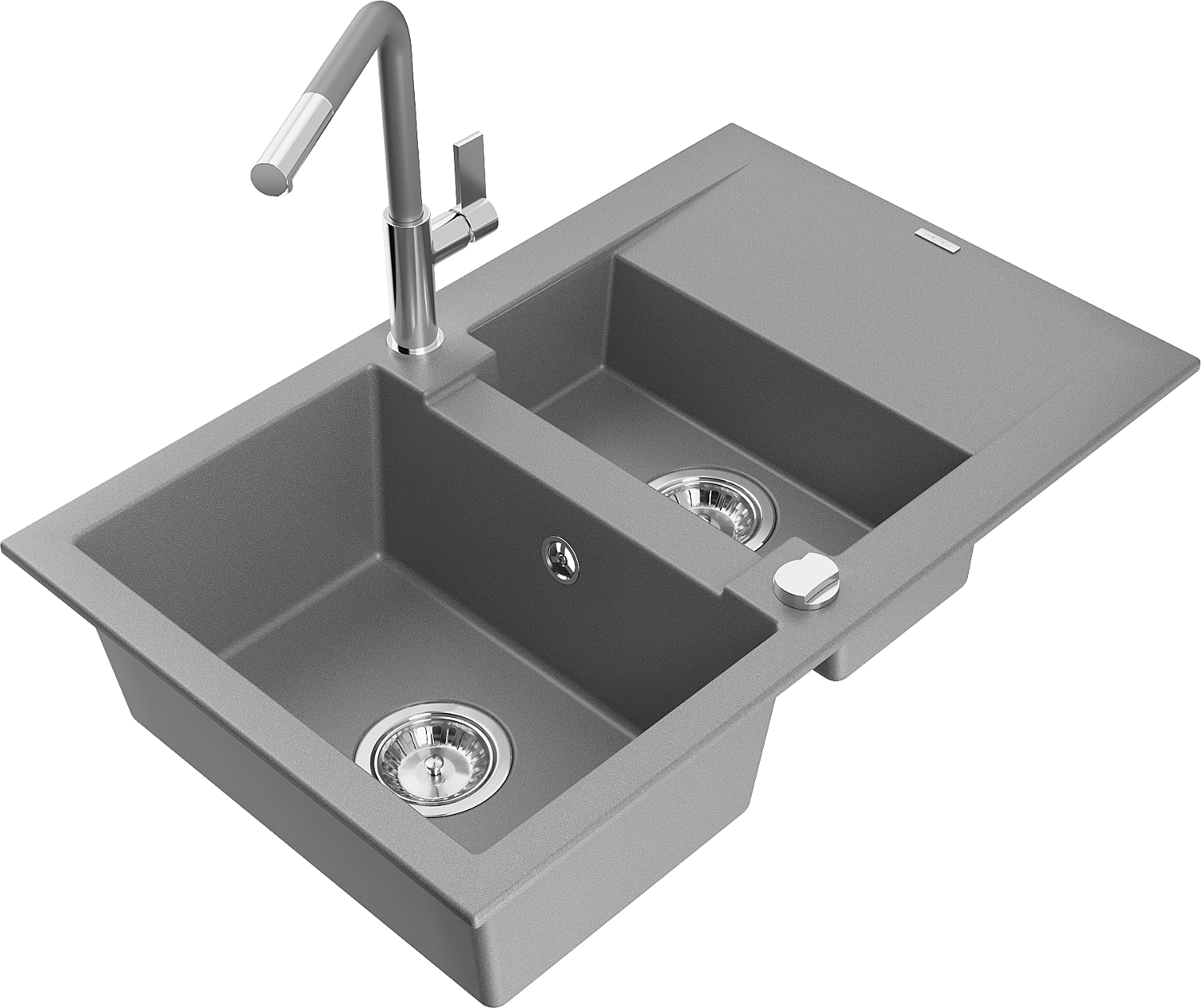 Mexen Gaspar 1,5-medencés gránit mosogató csepegtetővel és Flora konyhai csapteleppel, szürke - 6507-71-670401-06