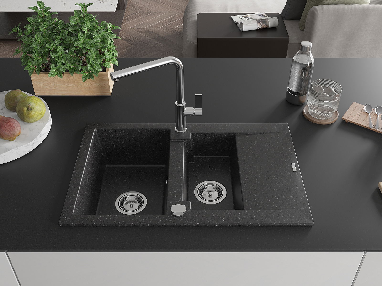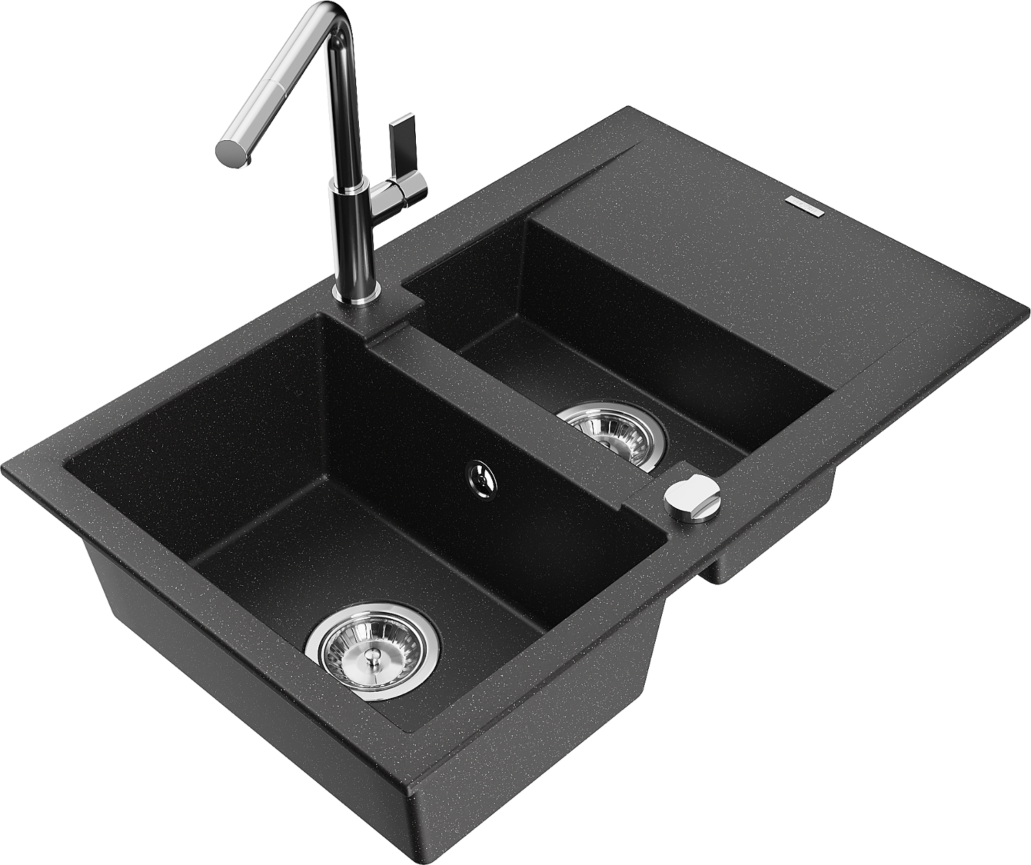 A mosogató magas minőségű gránitból készült. Elegáns, de mindenekelőtt praktikus kiegészítője minden konyhának, függetlenül annak stílusától. A gránit magas minősége és tartóssága hosszú távú használatot biztosít.