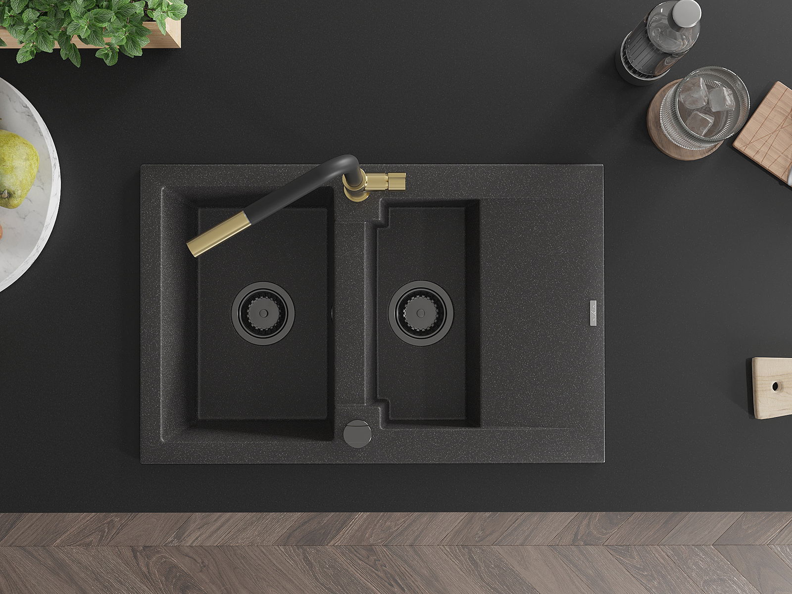 A mosogató magas minőségű gránitból készült. Elegáns, de mindenekelőtt praktikus kiegészítője minden konyhának, függetlenül annak stílusától. A gránit magas minősége és tartóssága hosszú távú használatot biztosít.