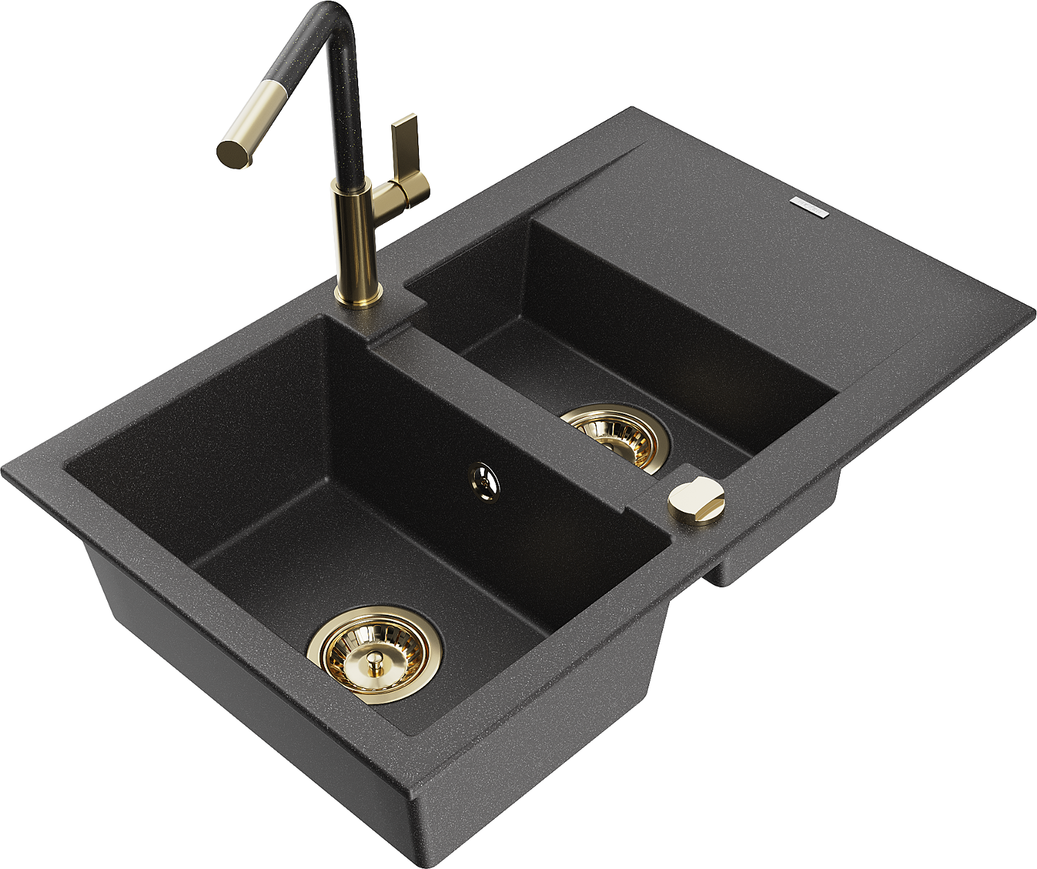 Mexen Gaspar gránit mosogató 1,5 medencés csepegtetővel és Flora konyhai csapteleppel, fekete pöttyös - 6507-76-670401-75-G