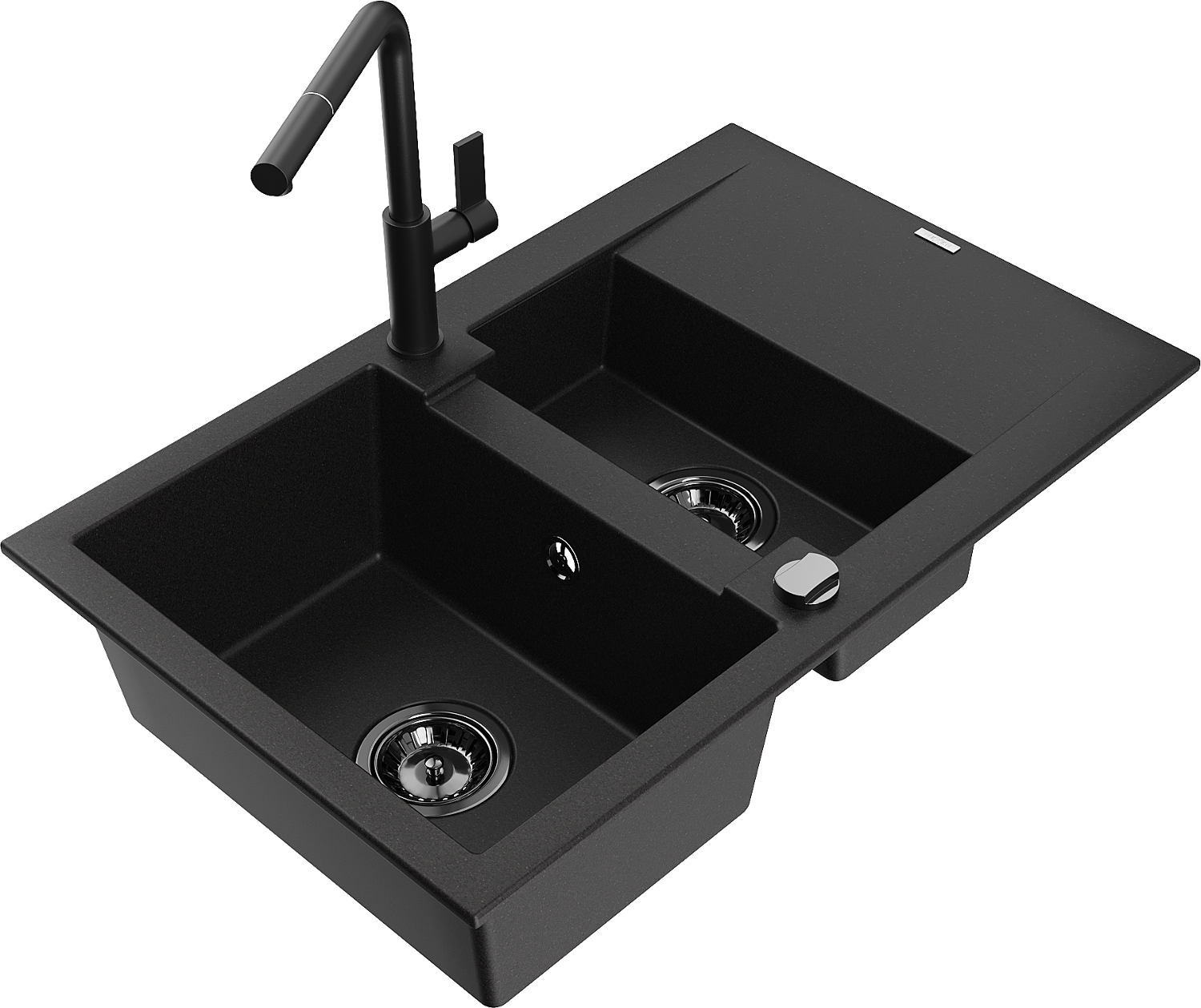 Mexen Gaspar gránit mosogató 1,5 medencés, csepegtetős és Flora konyhai csappal, fekete - 6507-77-670401-70-B