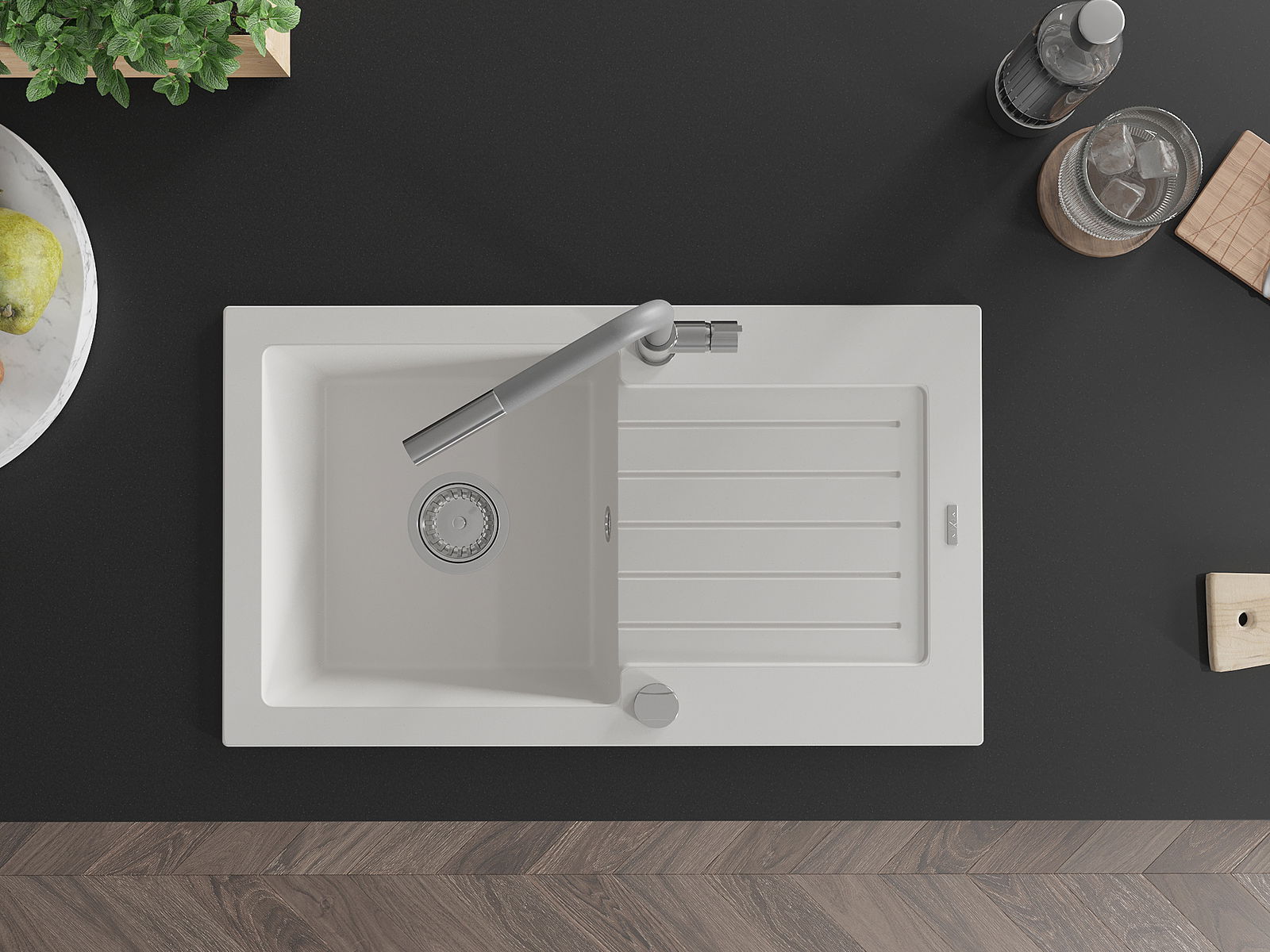 A mosogató felülete ellenáll a foltoknak és a elszíneződésnek, amelynek köszönhetően könnyű megtisztítani és hosszú ideig megtartja színét. Esztétikai és gyakorlatilag kiegészítve minden konyhát.