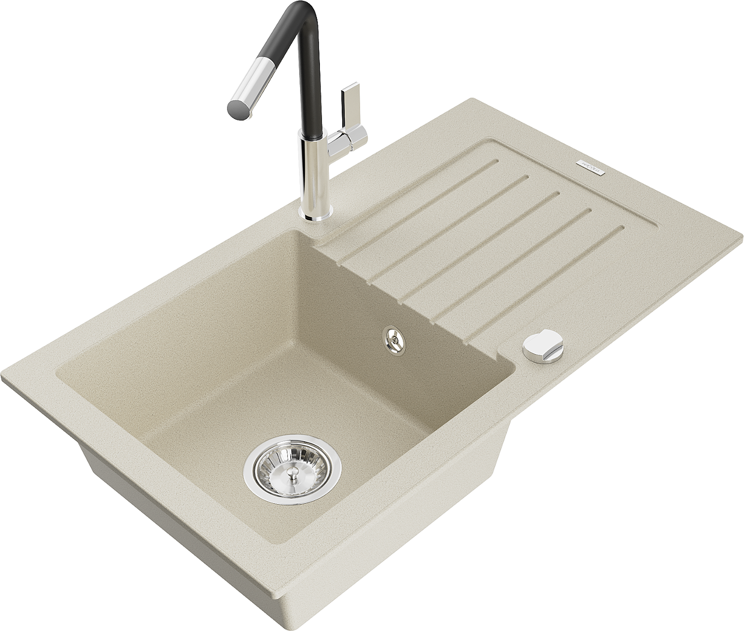 Mexen Pablo 1-medencés gránit mosogató csepptálcával és Flora konyhai csapteleppel, bézs - 6510-69-670401-07