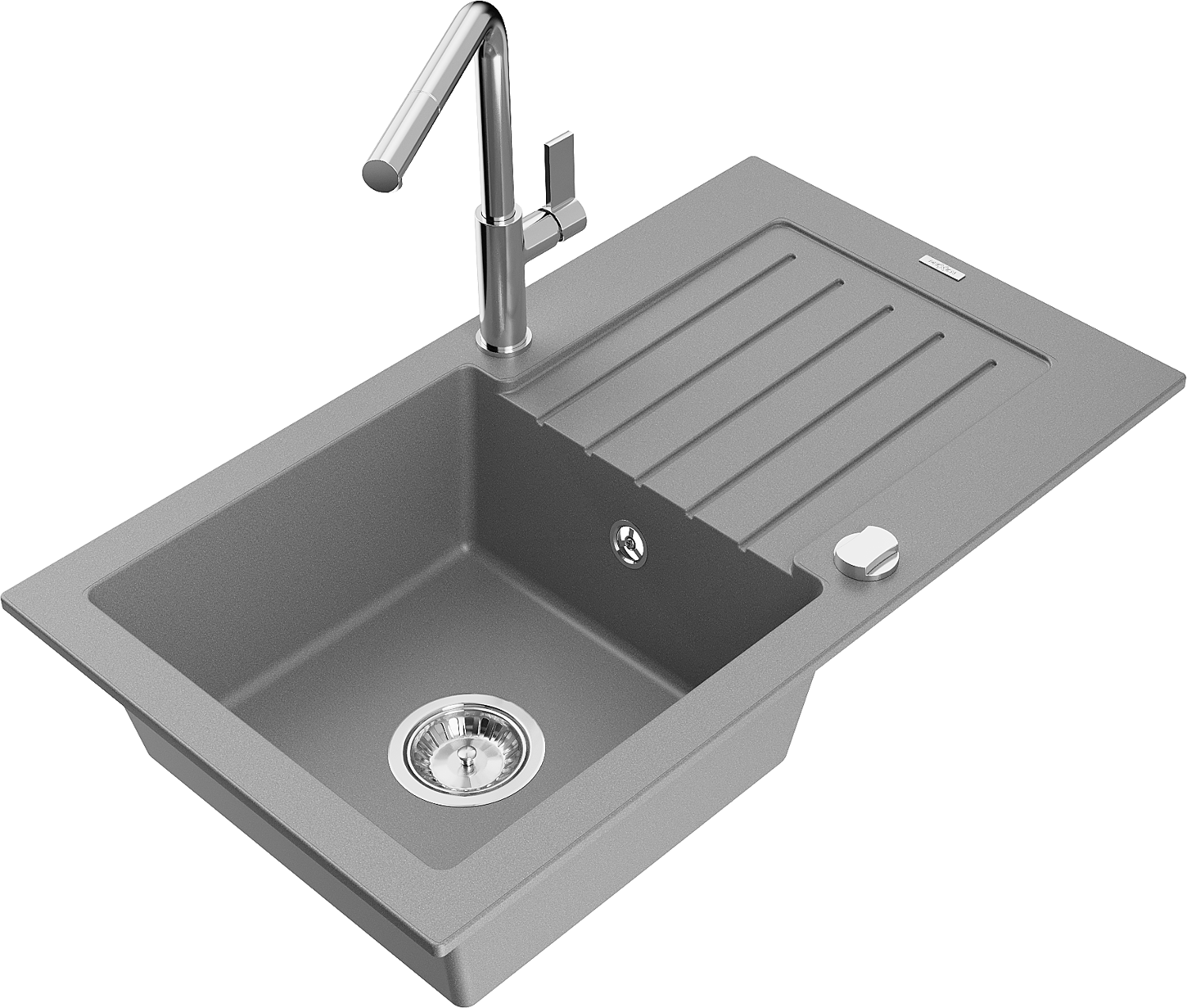 Mexen Pablo gránit egymedencés mosogató, csepegtetővel és Flora konyhai csapteleppel, szürke - 6510-71-670401-00