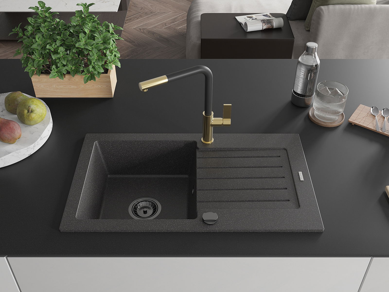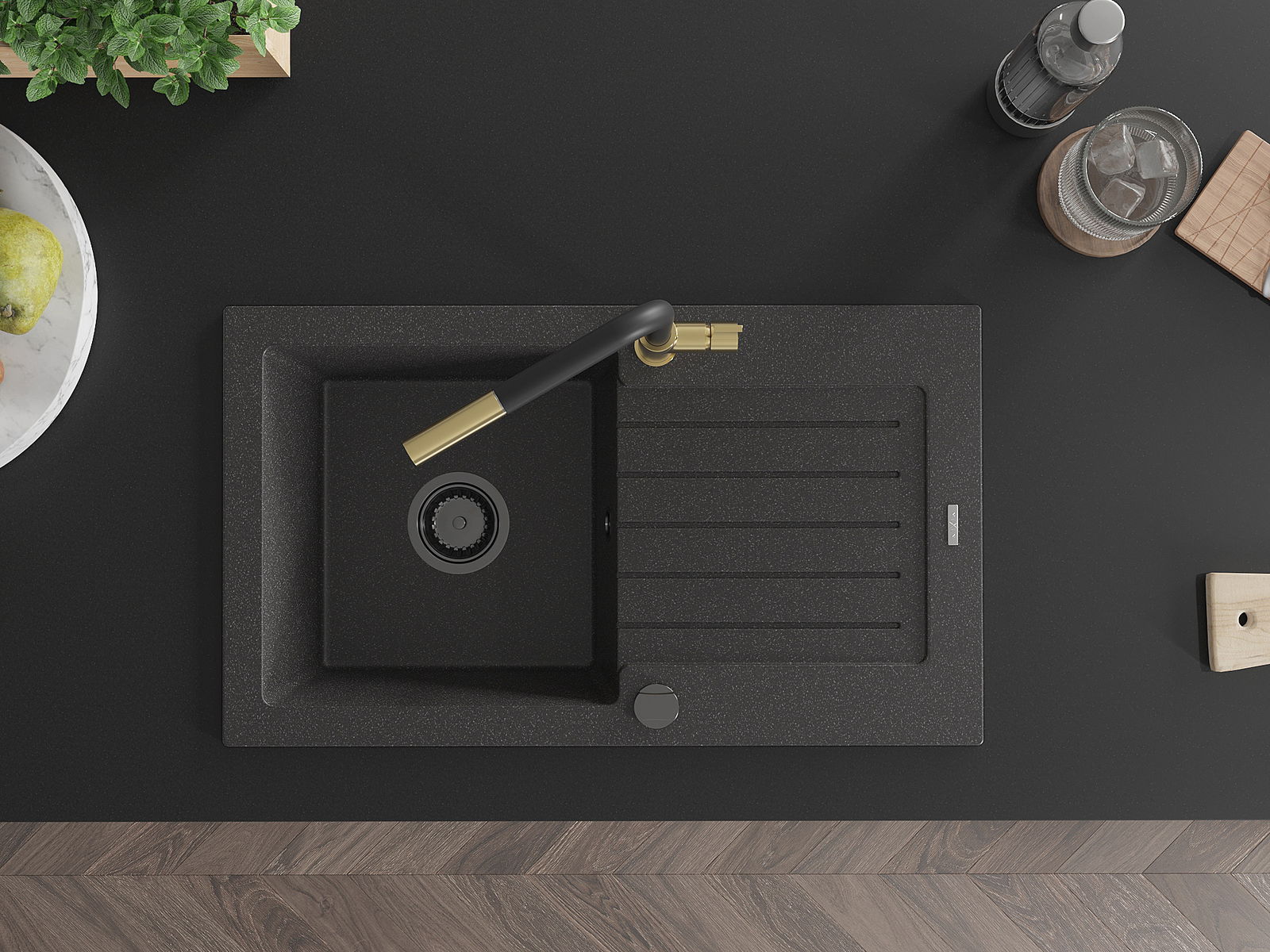 A mosogató magas minőségű gránitból készült. Elegáns, de mindenekelőtt praktikus kiegészítője minden konyhának, függetlenül annak stílusától. A gránit magas minősége és tartóssága hosszú távú használatot biztosít.
