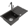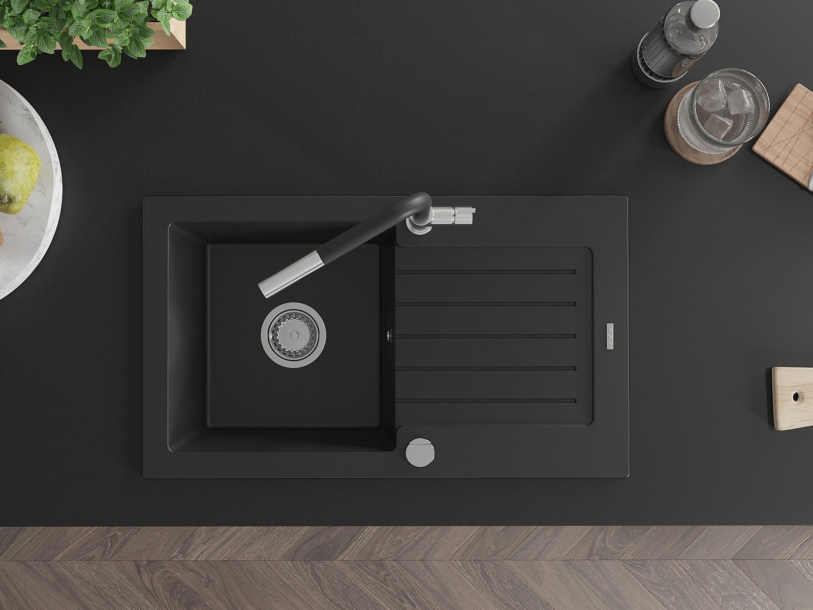 Mexen Pablo 1-medencés gránit mosogató csepegtetővel és Flora konyhai csappal, fekete - 6510-77-670401-07