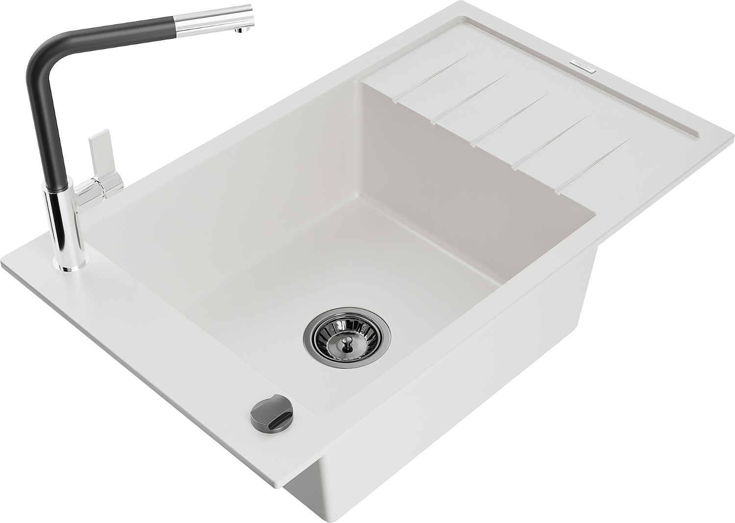 Mexen Elias 1-medencés gránit mosogató csepegtetővel és Flora konyhai csapteleppel, fehér - 6511-20-670401-07-B