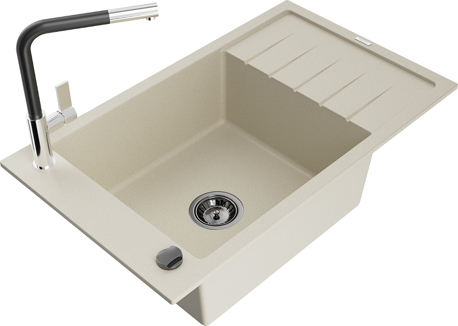 Mexen Elias gránit mosogató 1 medencés csepegtetővel és Flora konyhai csapteleppel, bézs - 6511-69-670401-07-B