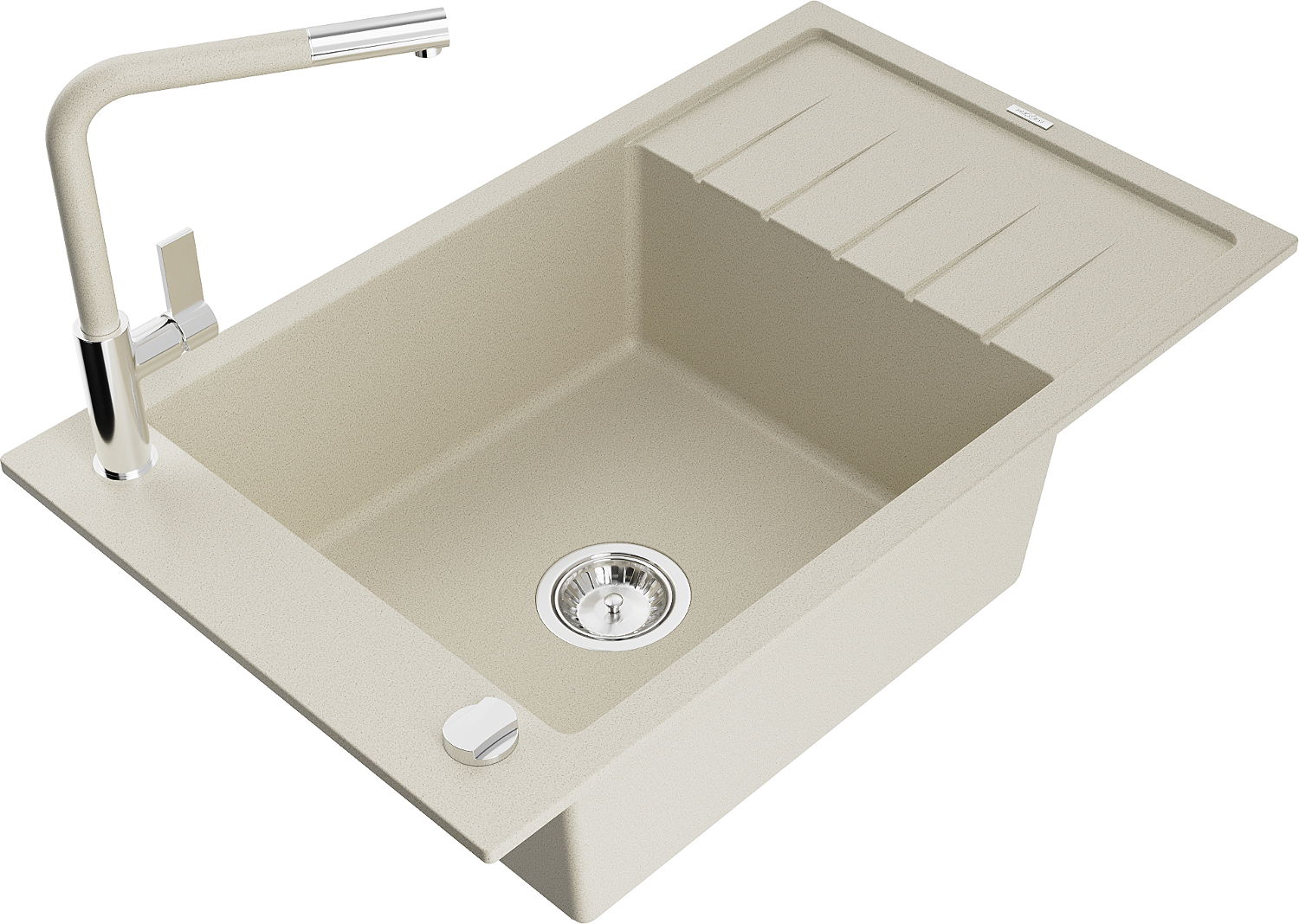 Mexen Elias egykamrás gránit mosogató lefolyóval és Flora konyhai csappal, bézs - 6511-69-670401-09