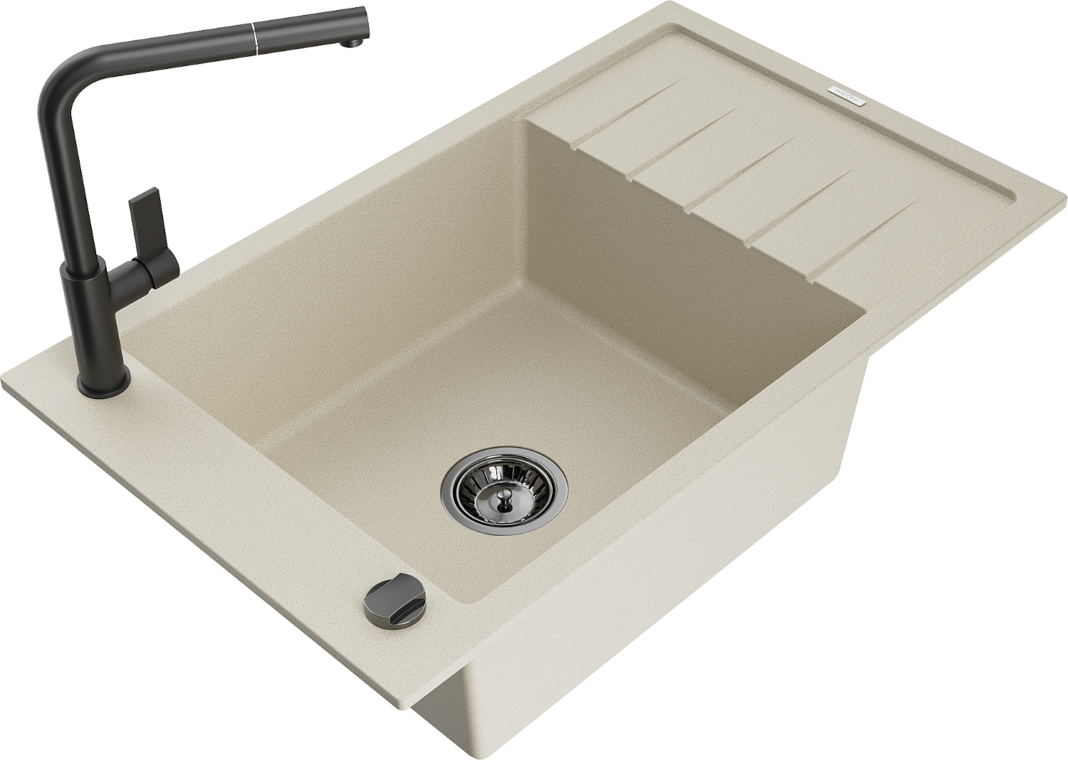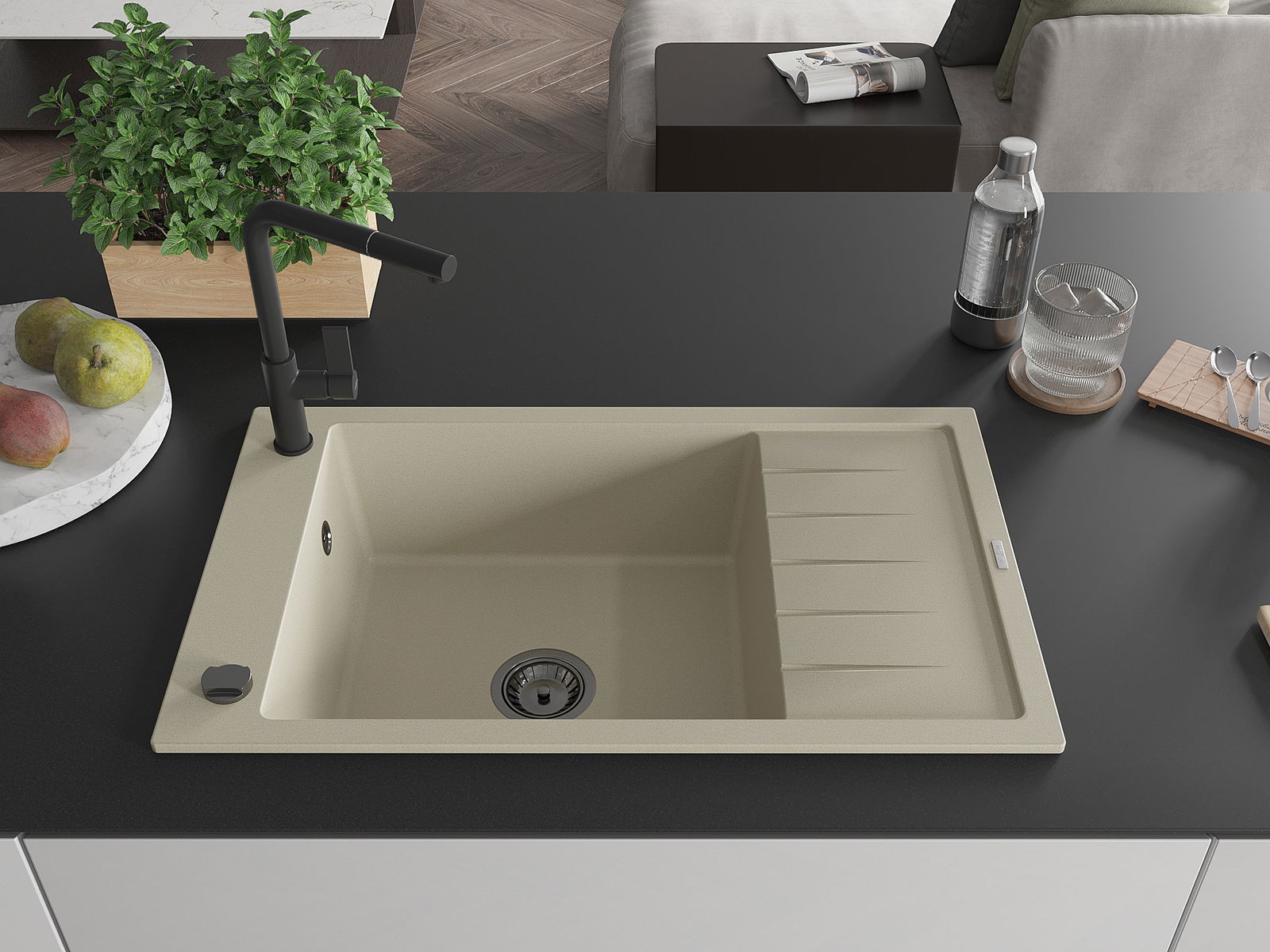 Mexen Elias egymedencés gránit mosogató csepegtetővel és Flora konyhai csapteleppel, bézs - 6511-69-670401-70-B