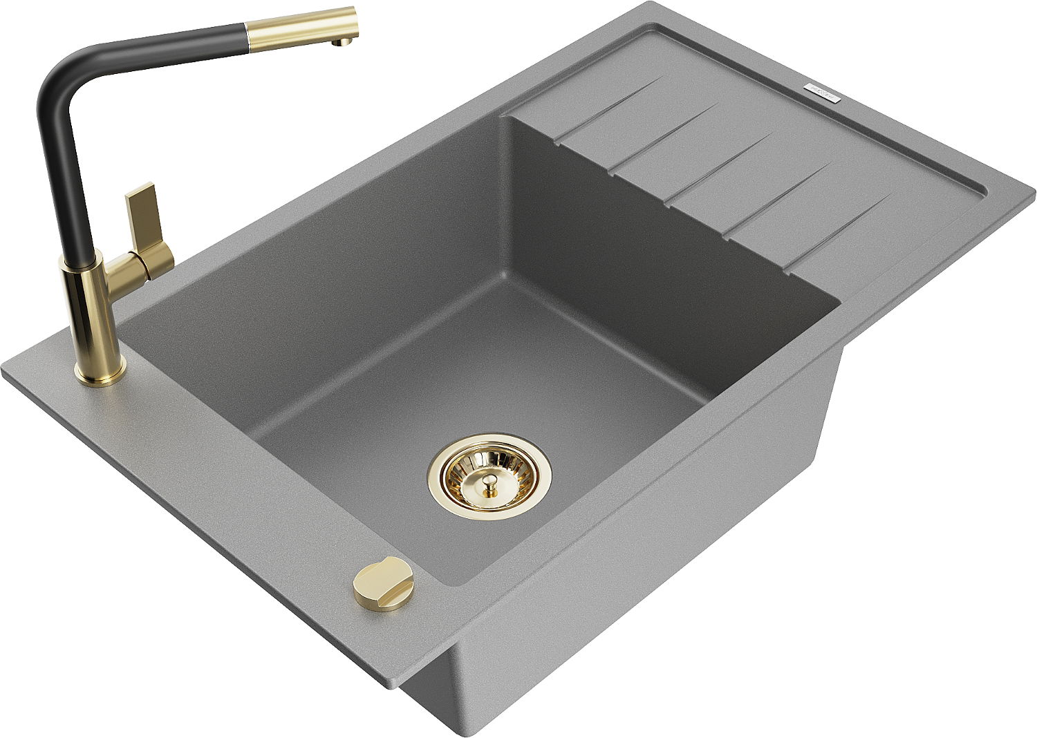 Mexen Elias egykamrás gránit mosogató lefolyóval és Flora konyhai csapteleppel, szürke - 6511-71-670401-57-G