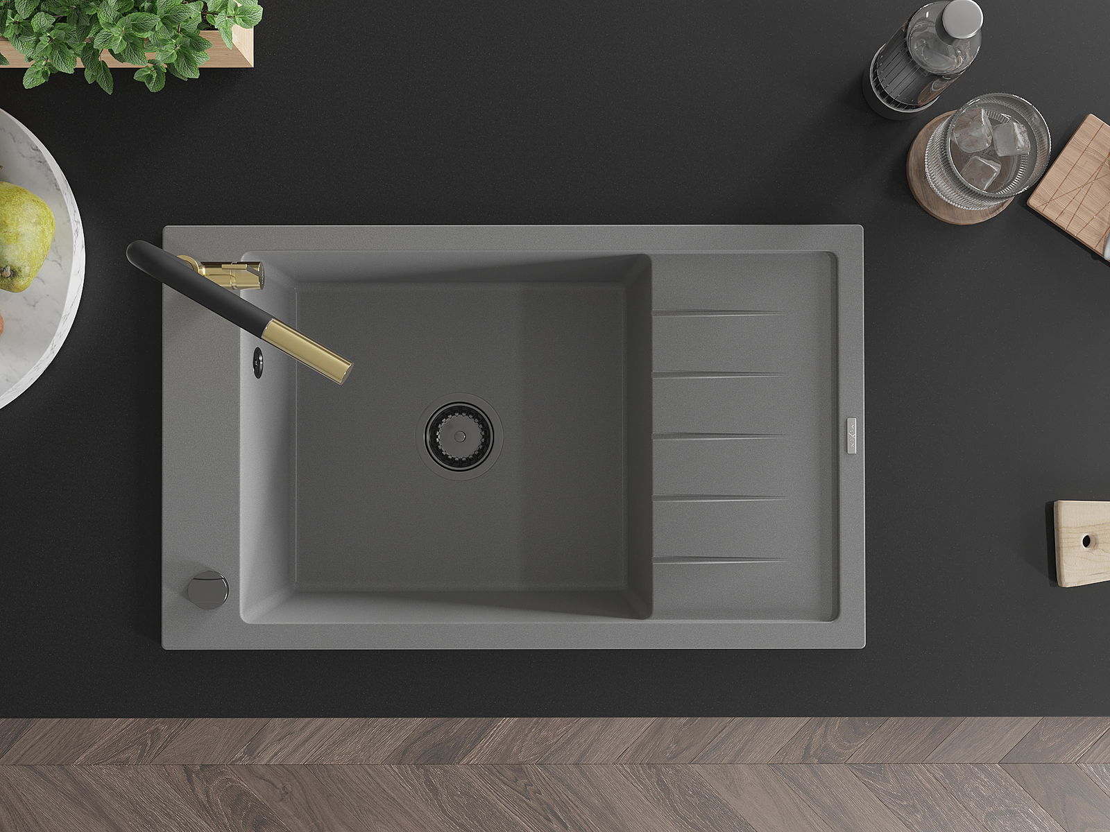 A mosogató kiváló minőségű gránitból készül. Ez egy elegáns és mindenekelőtt minden konyhához praktikus kiegészítés, stílusától függetlenül. A kiváló minőségű és a gránit tartósság biztosítja a sok éves használatát.