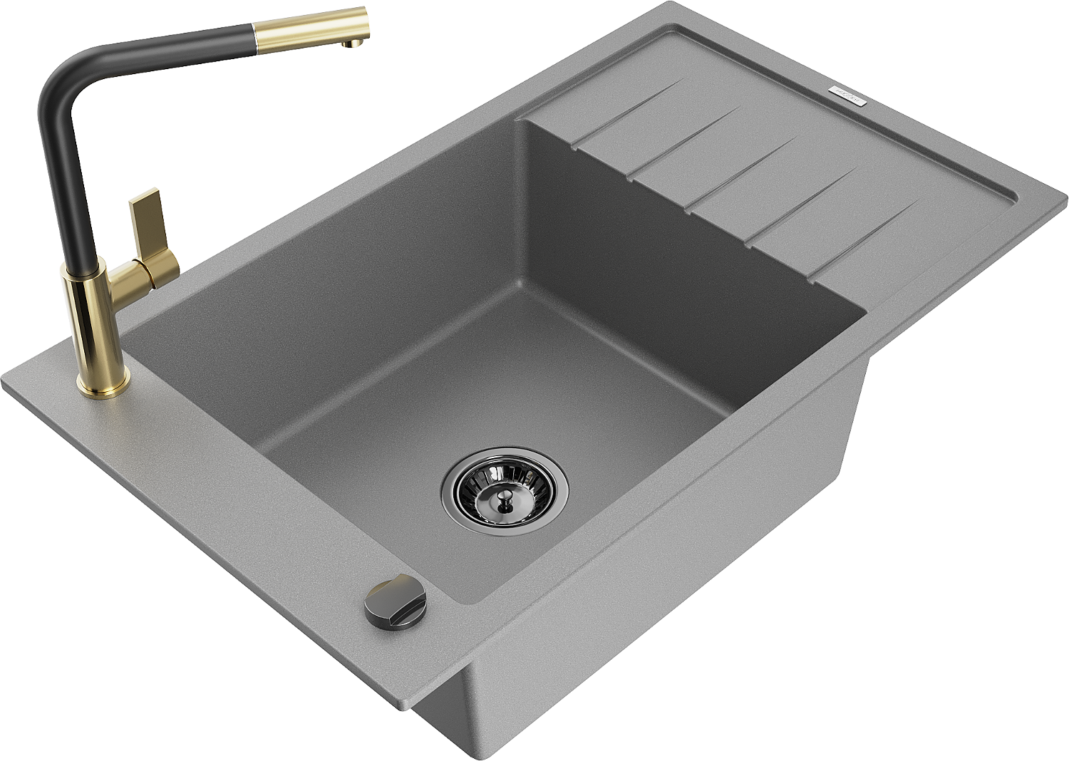 Mexen Elias gránit mosogató 1-medencés csepegtetővel és Flora konyhai csapteleppel, szürke - 6511-71-670401-57-B
