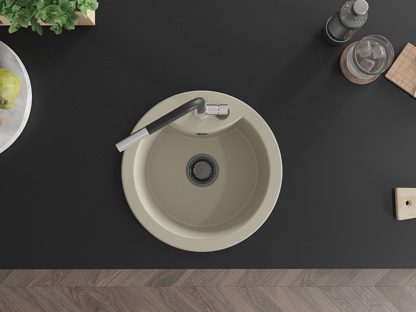 A mosogató kiváló minőségű gránitból készül. Ez egy elegáns és mindenekelőtt minden konyhához praktikus kiegészítés, stílusától függetlenül. A kiváló minőségű és a gránit tartósság biztosítja a sok éves használatát.