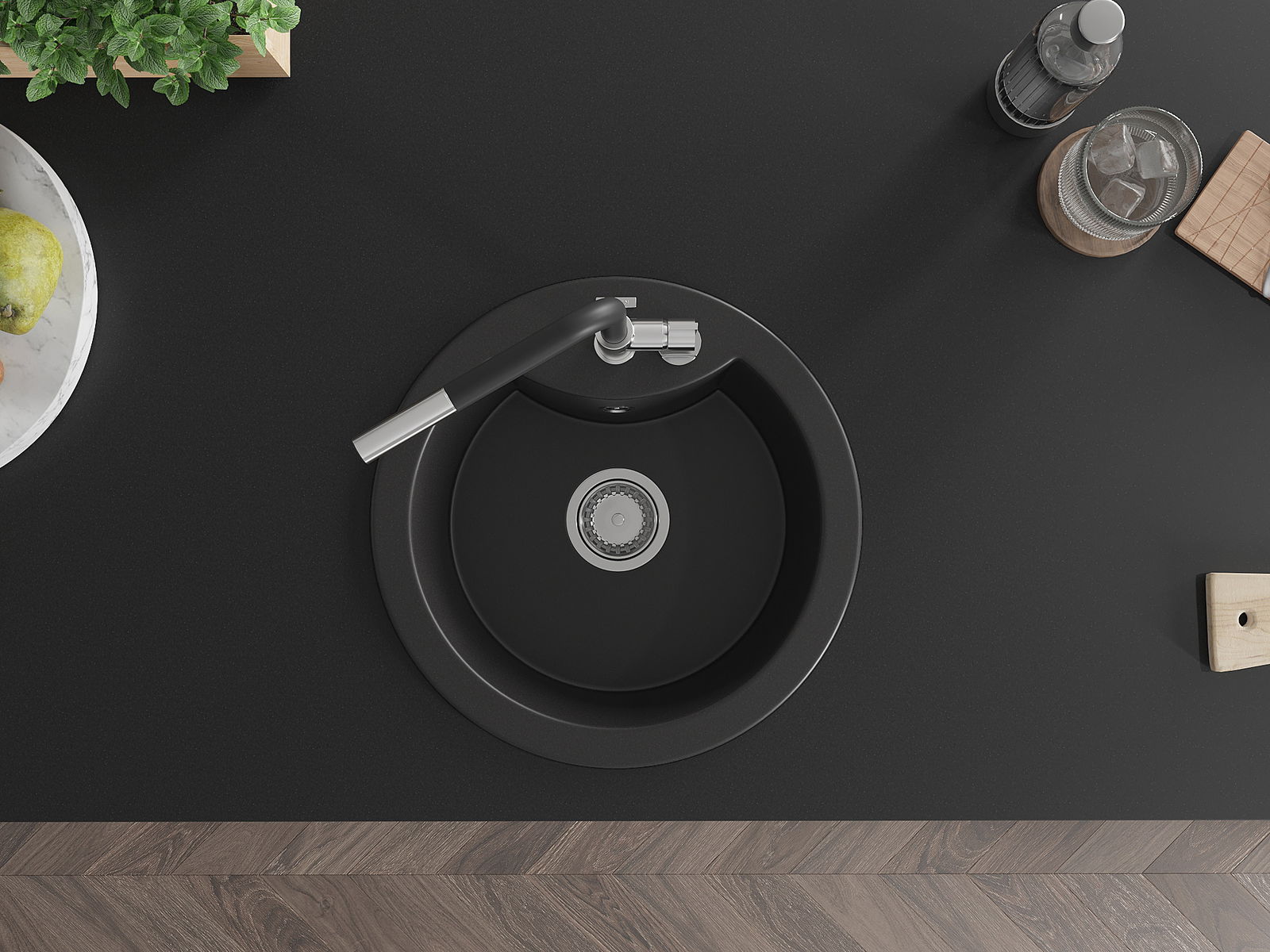 A mosogató kiváló minőségű gránitból készül. Ez egy elegáns és mindenekelőtt minden konyhához praktikus kiegészítés, stílusától függetlenül. A kiváló minőségű és a gránit tartósság biztosítja a sok éves használatát.