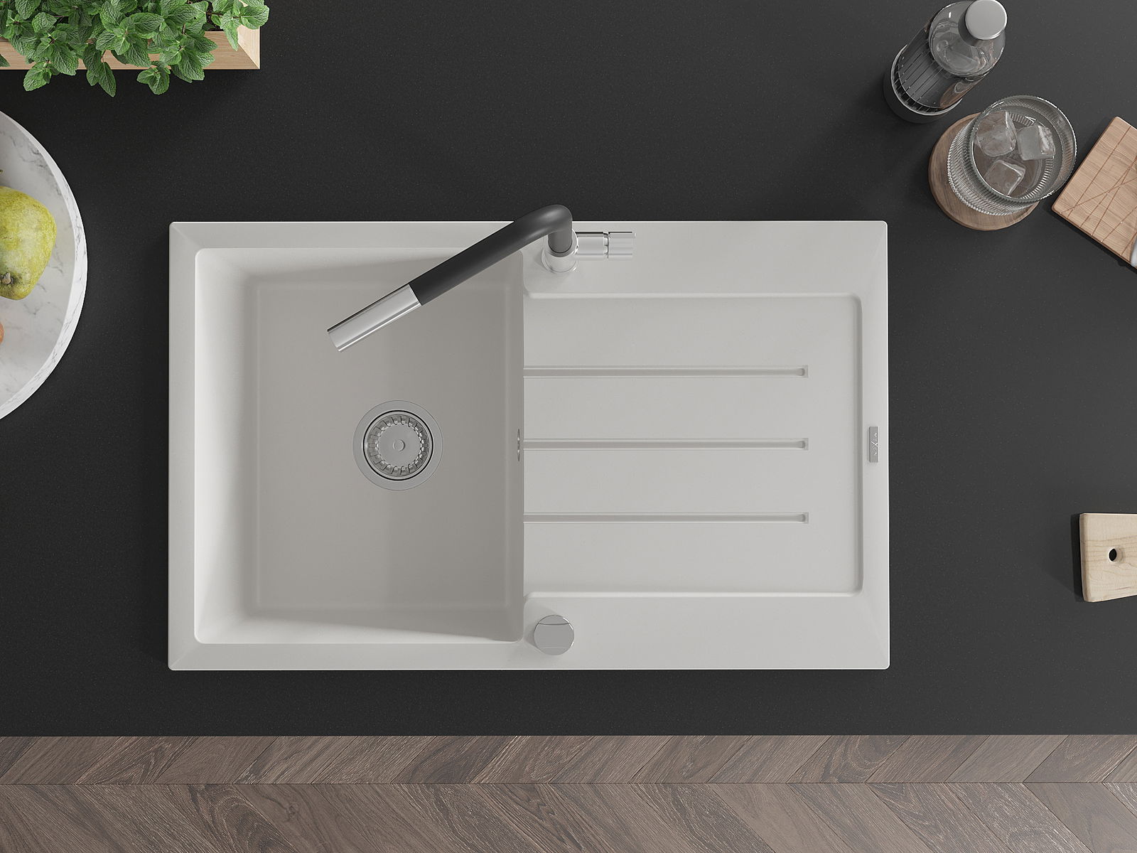 A mosogató felülete ellenáll a foltoknak és a elszíneződésnek, amelynek köszönhetően könnyű megtisztítani és hosszú ideig megtartja színét. Esztétikai és gyakorlatilag kiegészítve minden konyhát.
