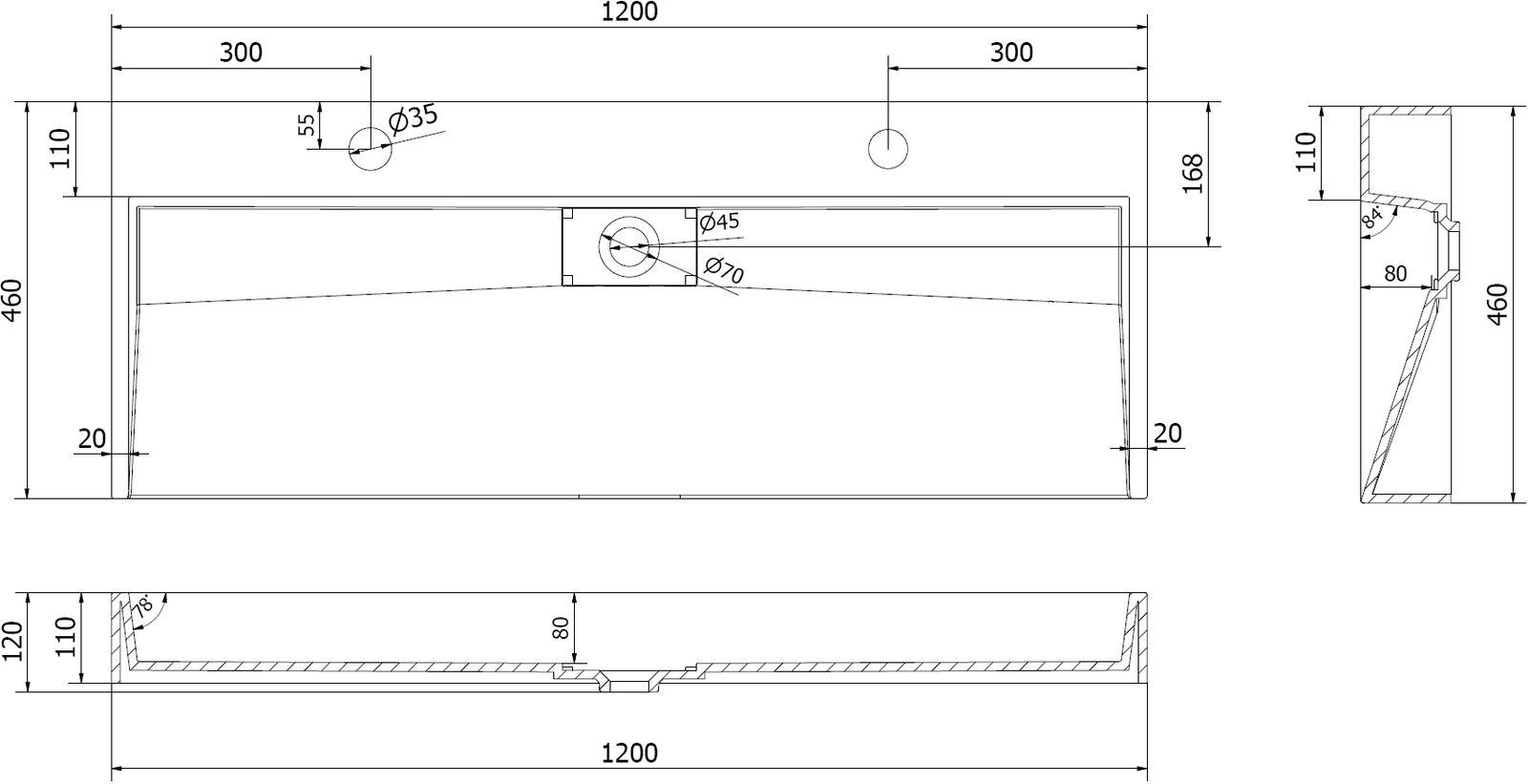 Mexen Ava asztali mosdókagyló konglomerátumból 2/O 120 x 46 cm, fekete - 23011272