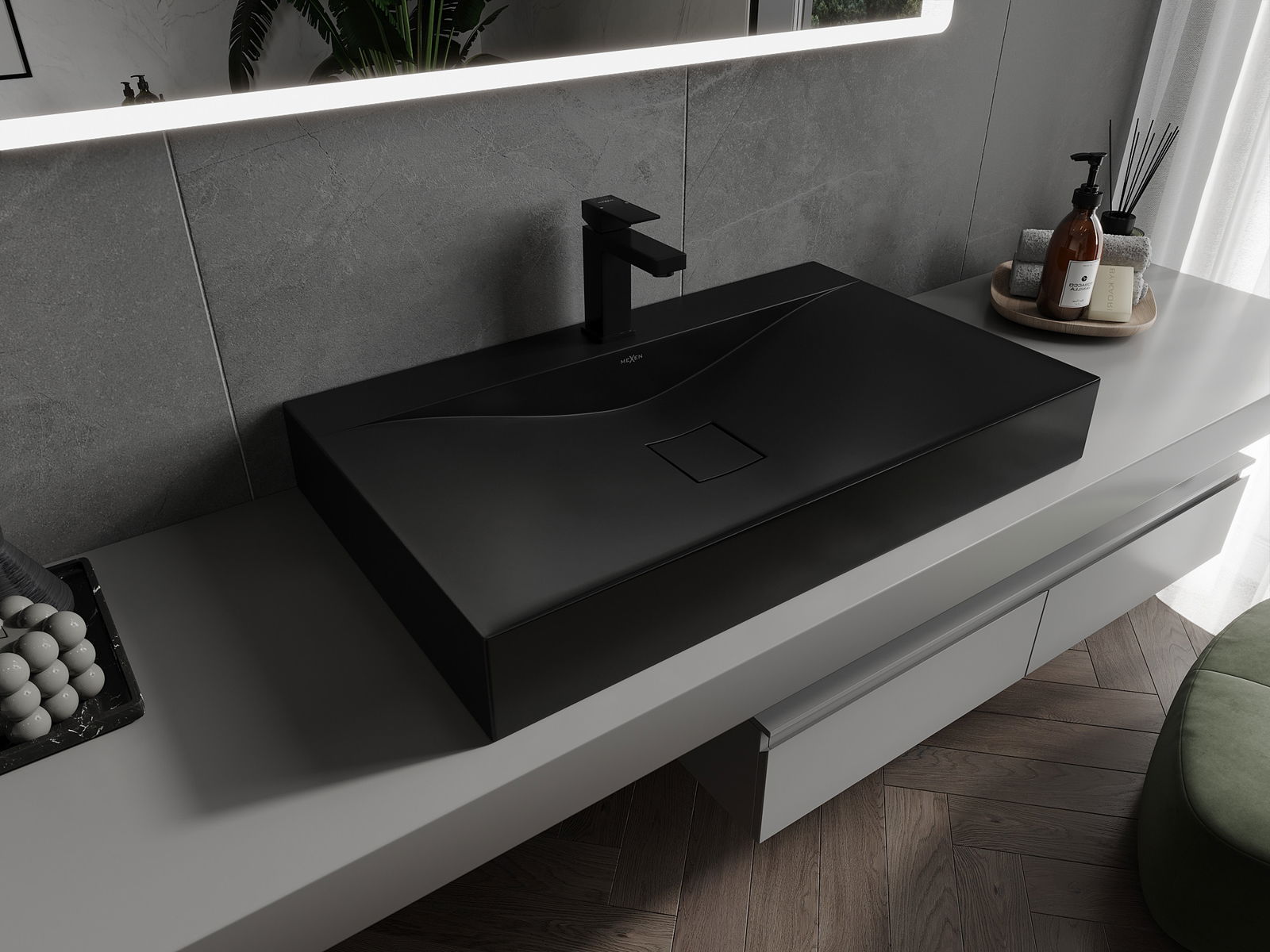 A mosdókagyló rendelkezik egy nyílással, amelybe csaptelepet szerelhetünk. Ez lehetővé teszi az értékes hely megtakarítását a fürdőszobában, valamint kiemeli annak esztétikáját. Ez a megoldás megkönnyíti a mosdókagyló körüli tisztaság fenntartását is.