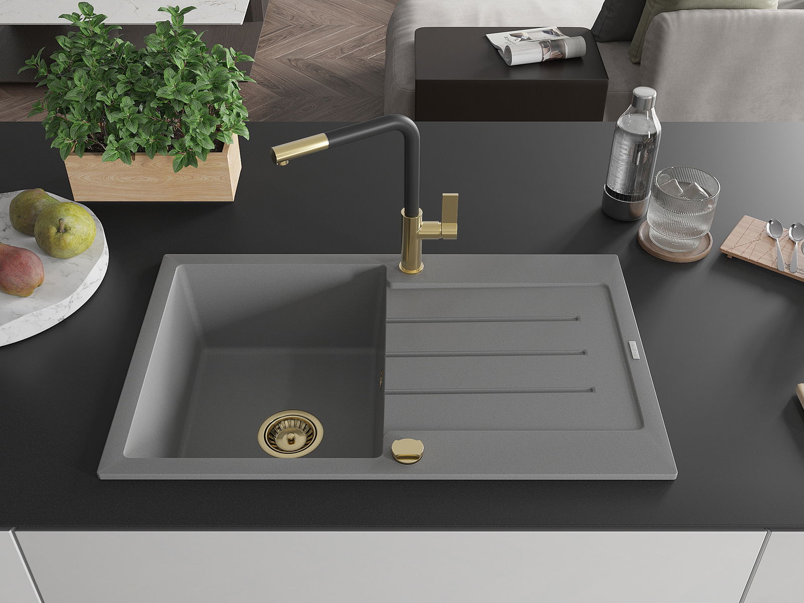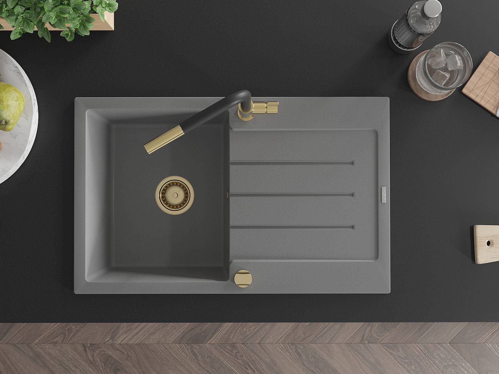 A mosogató kiváló minőségű gránitból készül. Ez egy elegáns és mindenekelőtt minden konyhához praktikus kiegészítés, stílusától függetlenül. A kiváló minőségű és a gránit tartósság biztosítja a sok éves használatát.
