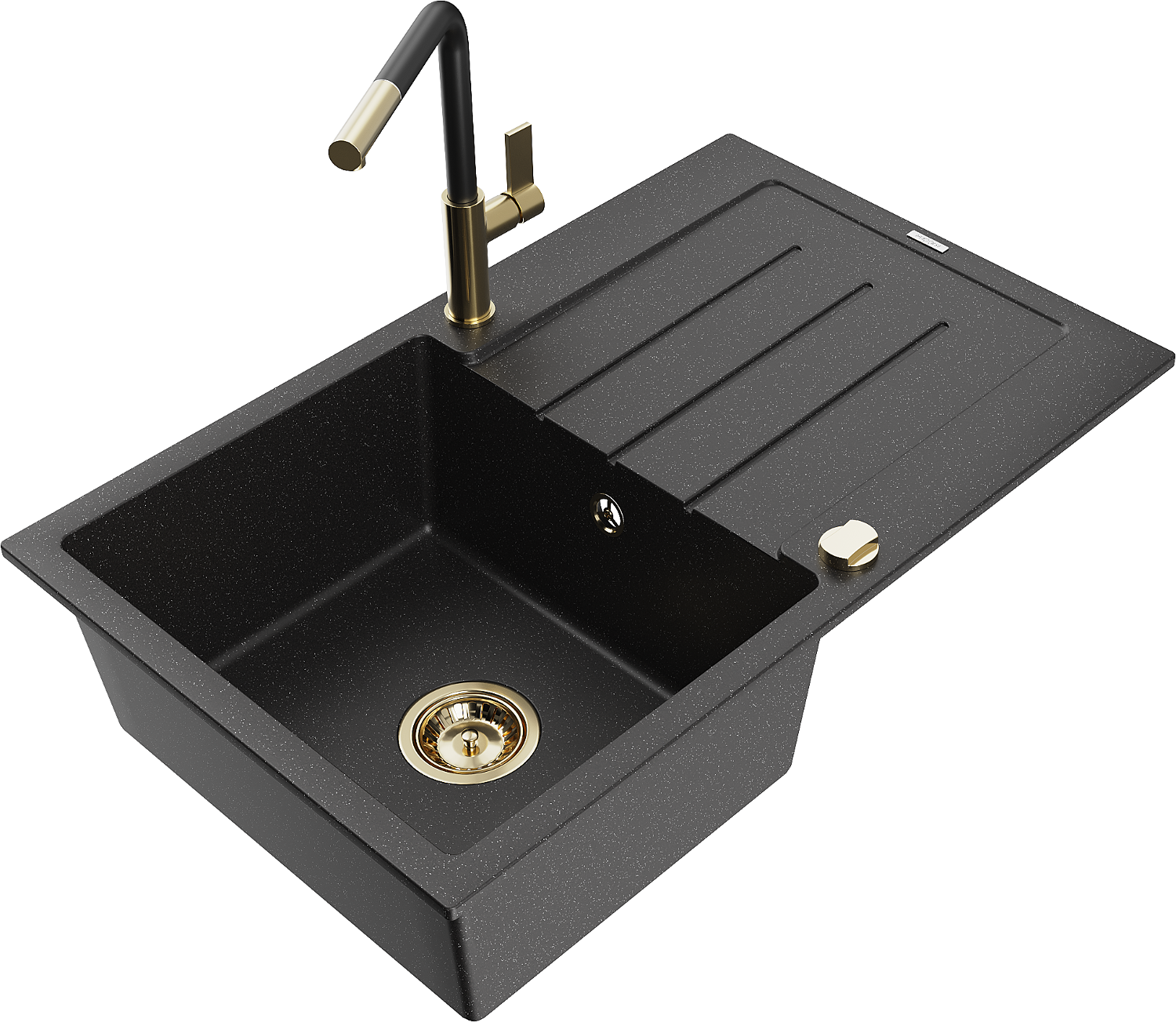 Mexen Bruno egykamrás gránit mosogató csepegtetővel és Flora konyhai csapteleppel, fekete/ezüst metál - 6513-73-670401-57-G