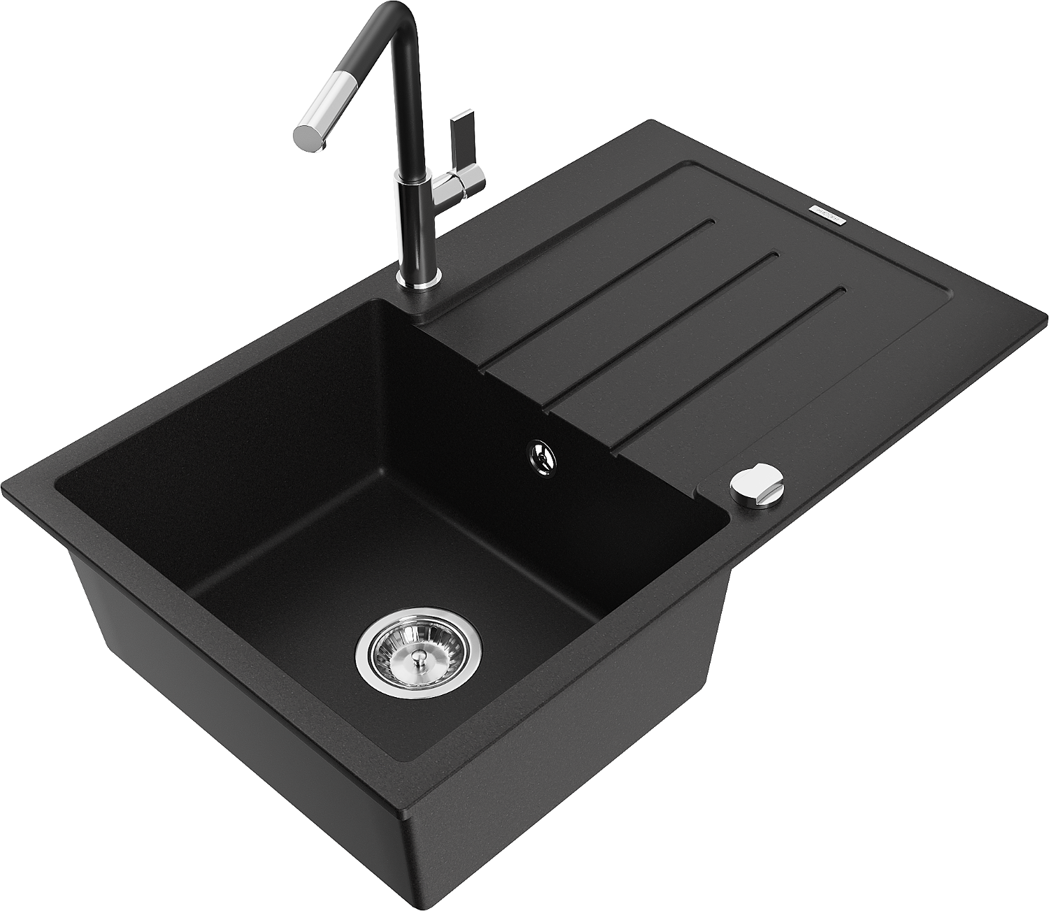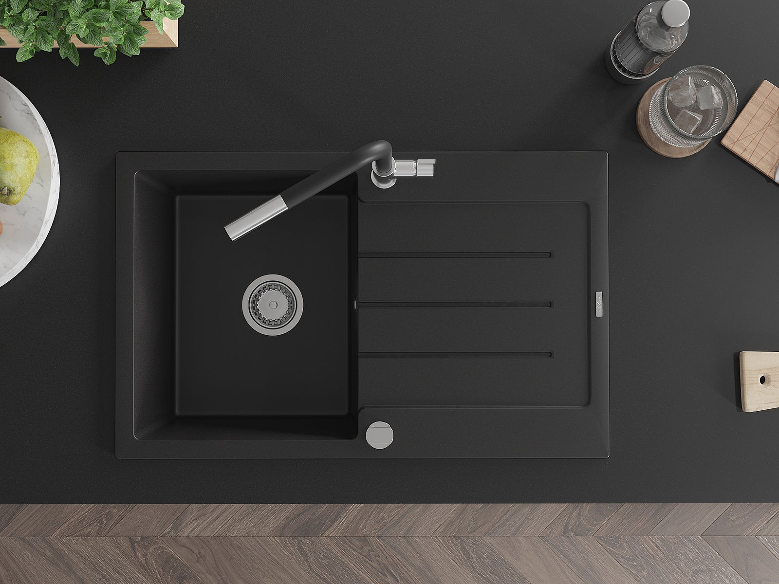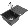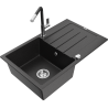 Mexen Bruno egymedencés gránit mosogató csepegtetővel és Flora konyhai csapteleppel, fekete - 6513-77-670401-07