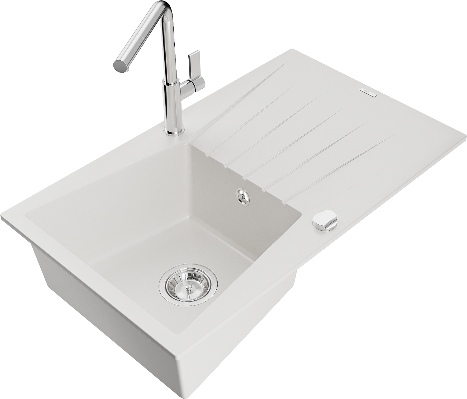 Mexen Cesar egymedencés gránit mosogató csepegtetővel és Flora konyhai csapteleppel, fehér - 6514-20-670401-00