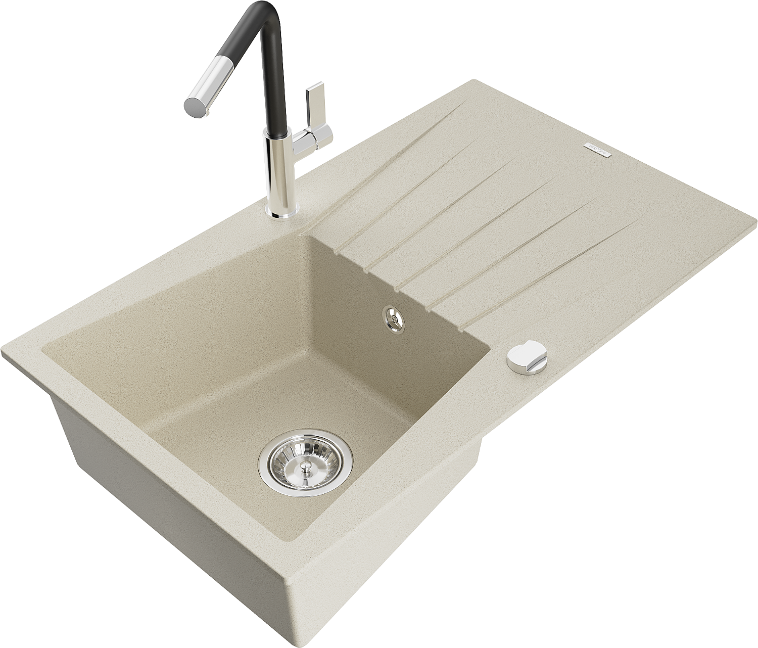 A mosogató magas minőségű gránitból készült. Elegáns, de mindenekelőtt praktikus kiegészítője minden konyhának, függetlenül annak stílusától. A gránit magas minősége és tartóssága hosszú távú használatot biztosít.