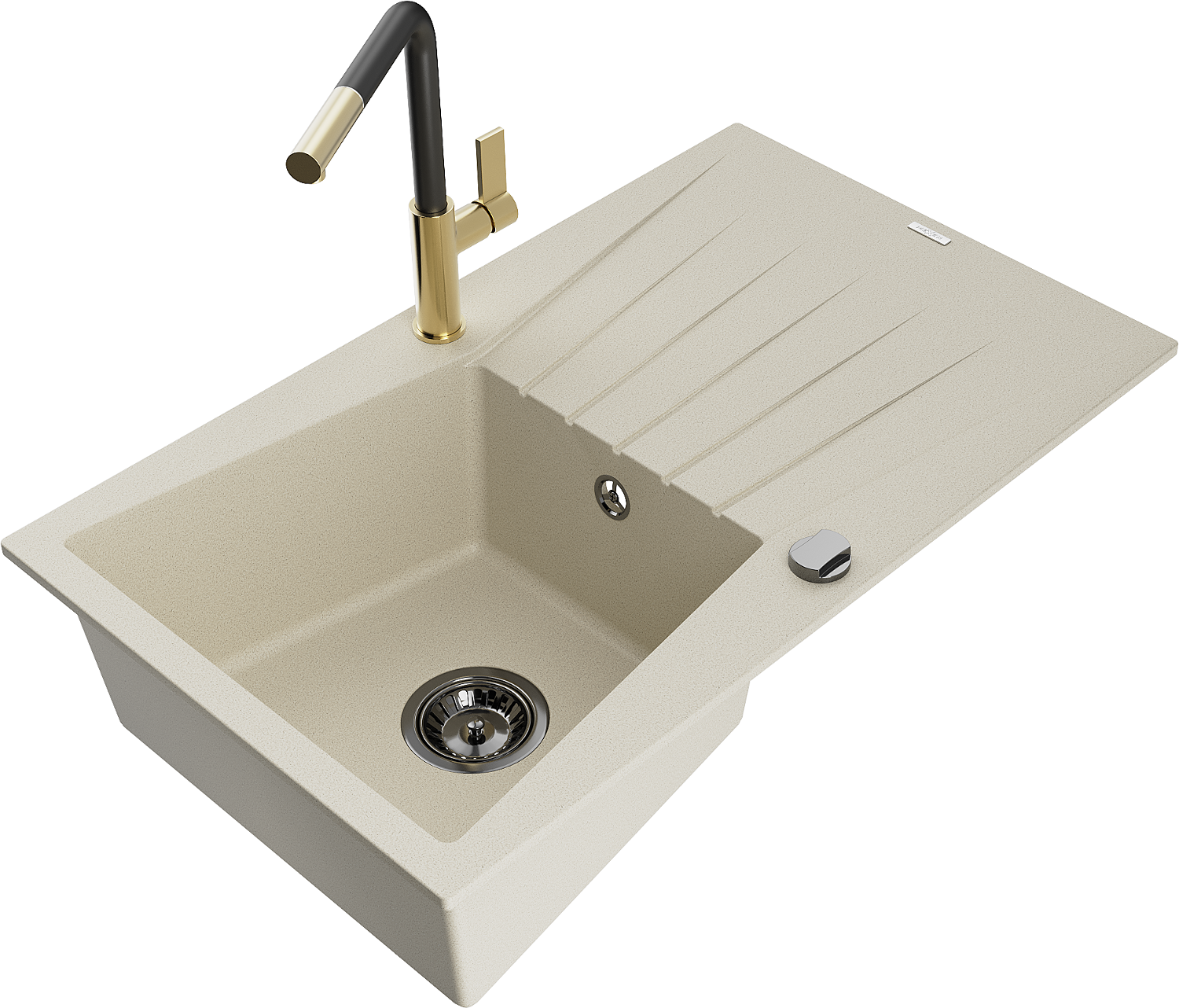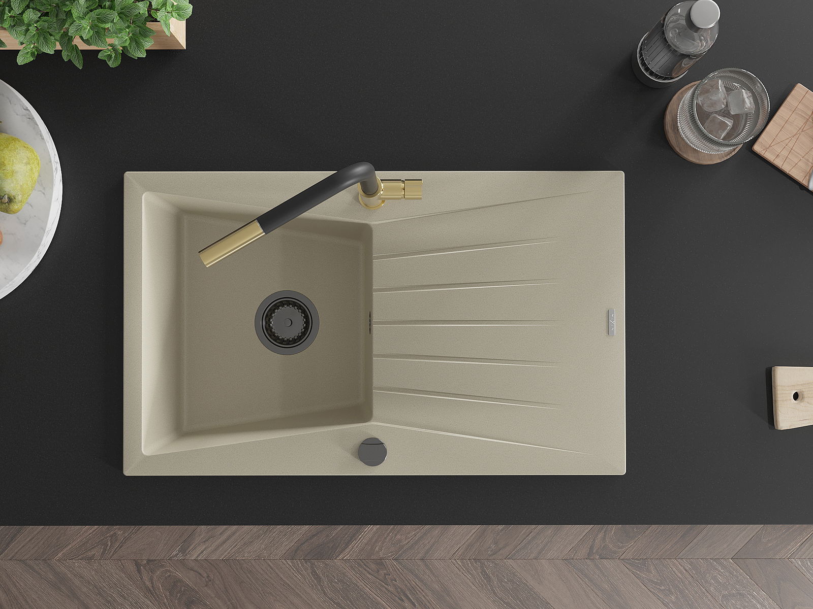Mexen Cesar egymedencés gránit mosogató csepegtetővel és Flora konyhai csapteleppel, bézs - 6514-69-670401-57-B
