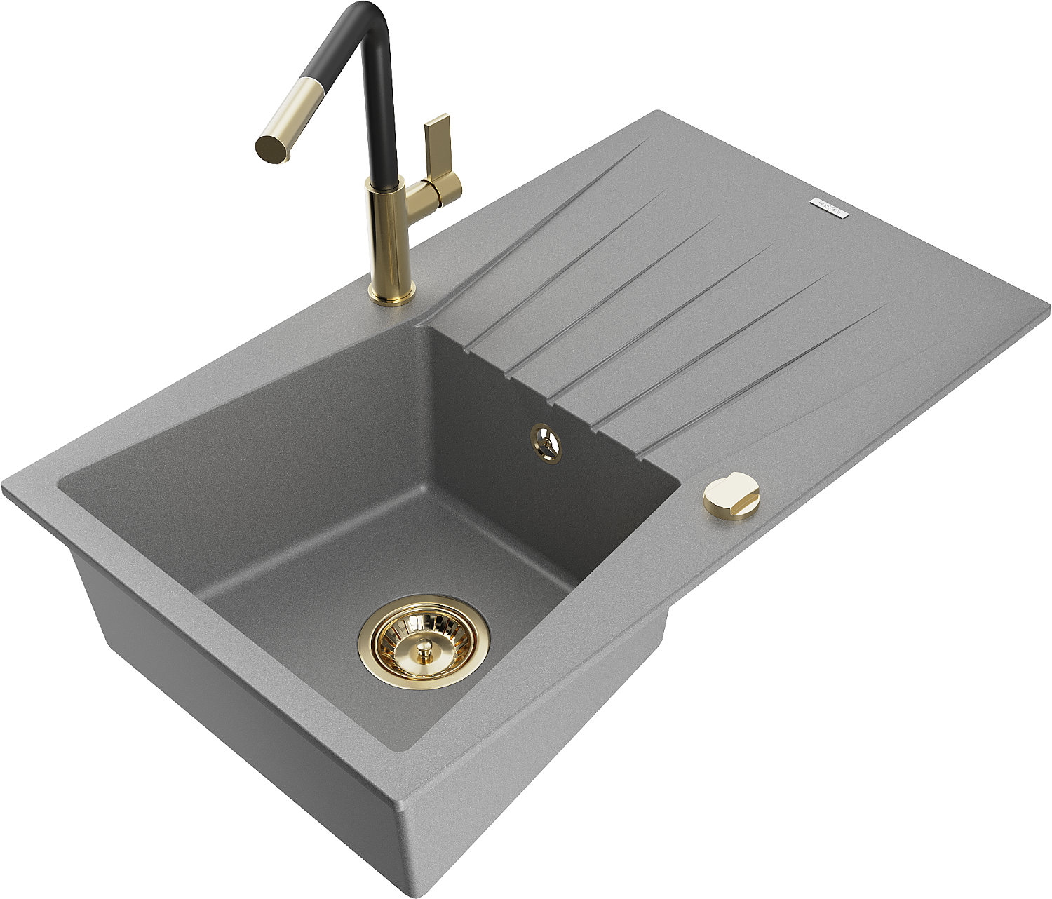 Mexen Cesar egymedencés gránit mosogató lefolyóval és Flora konyhai csapteleppel, szürke - 6514-71-670401-57-G