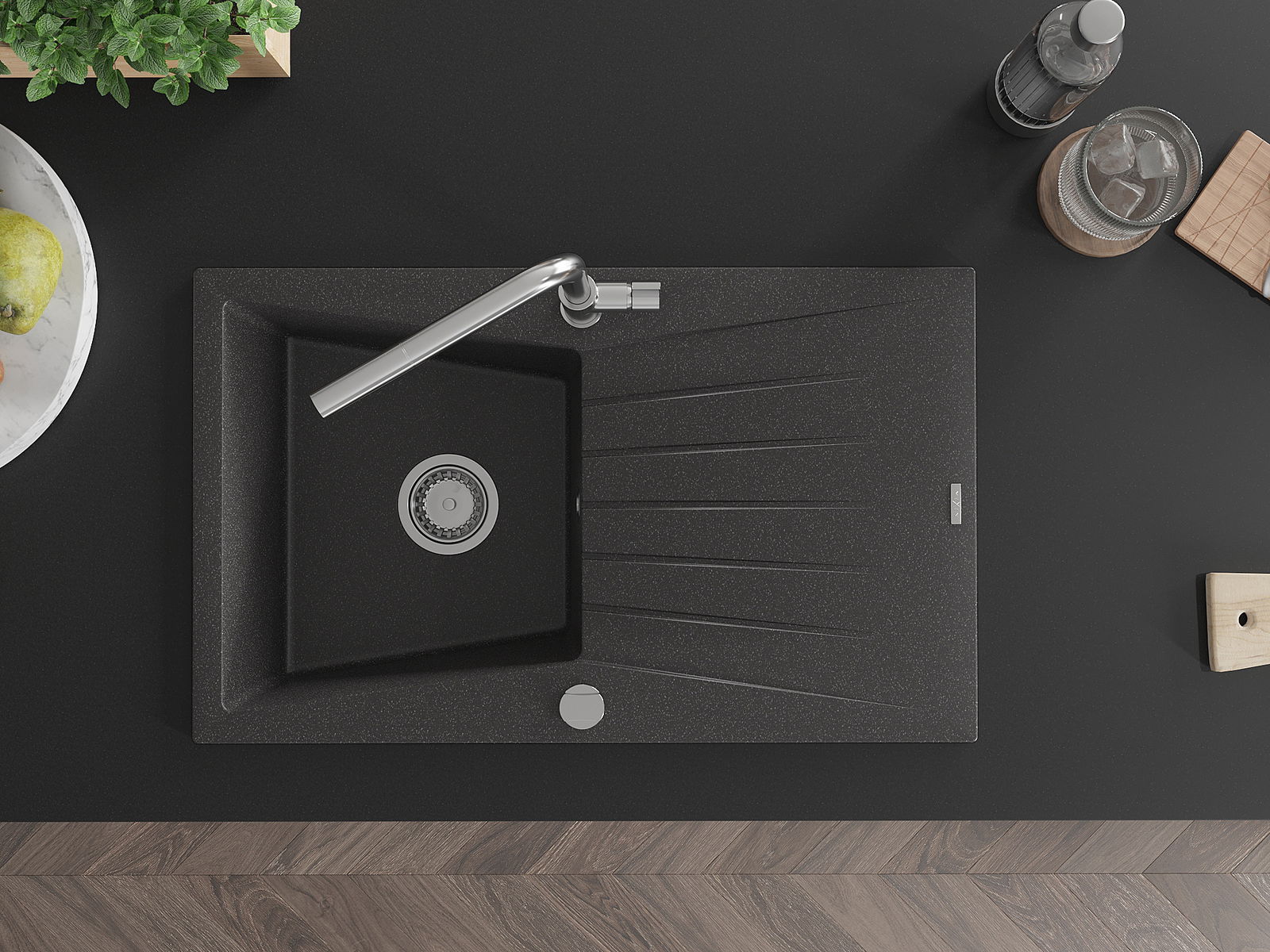 A mosogató kiváló minőségű gránitból készül. Ez egy elegáns és mindenekelőtt minden konyhához praktikus kiegészítés, stílusától függetlenül. A kiváló minőségű és a gránit tartósság biztosítja a sok éves használatát.