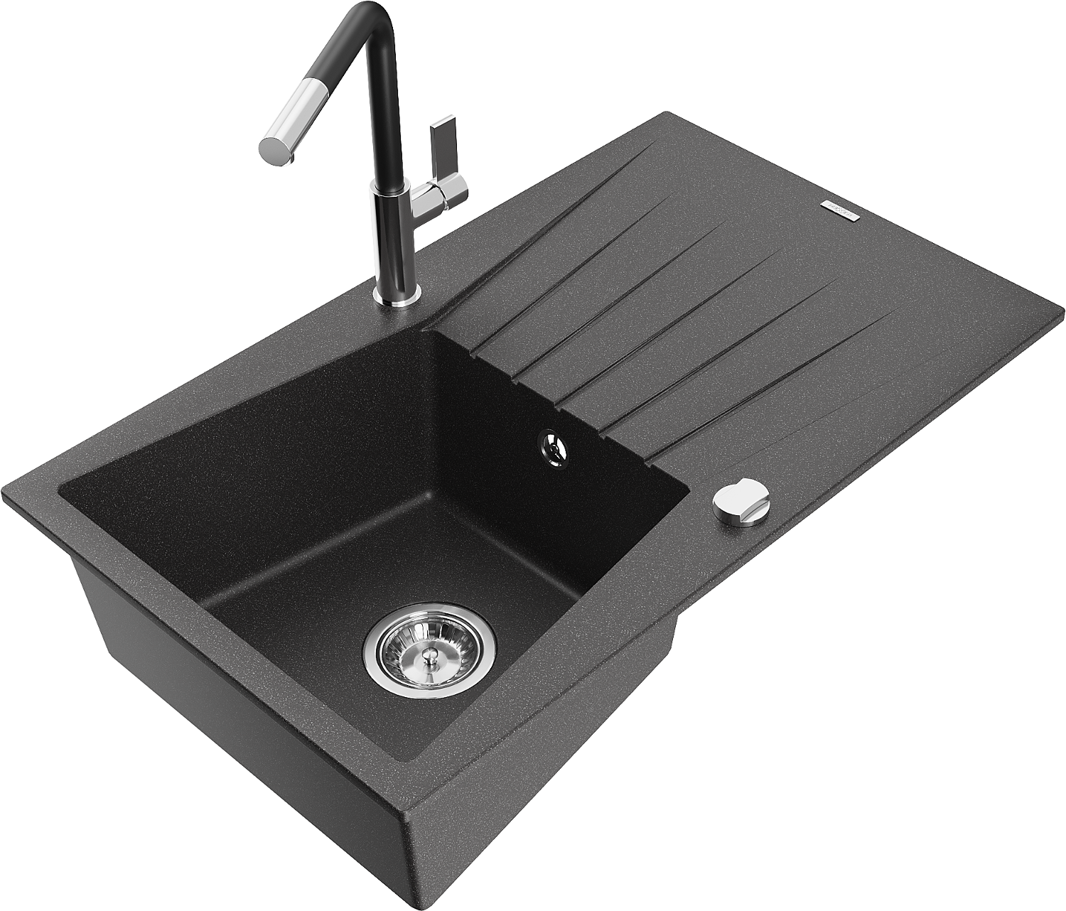 A mosogató magas minőségű gránitból készült. Elegáns, de mindenekelőtt praktikus kiegészítője minden konyhának, függetlenül annak stílusától. A gránit magas minősége és tartóssága hosszú távú használatot biztosít.