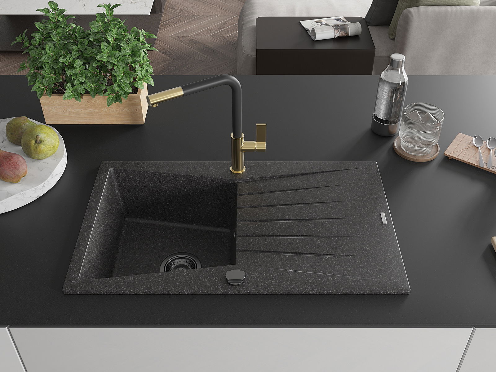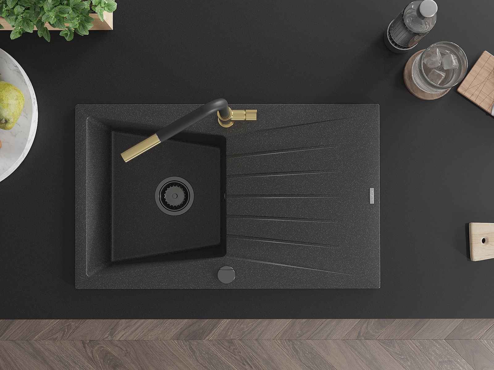A mosogató magas minőségű gránitból készült. Elegáns, de mindenekelőtt praktikus kiegészítője minden konyhának, függetlenül annak stílusától. A gránit magas minősége és tartóssága hosszú távú használatot biztosít.