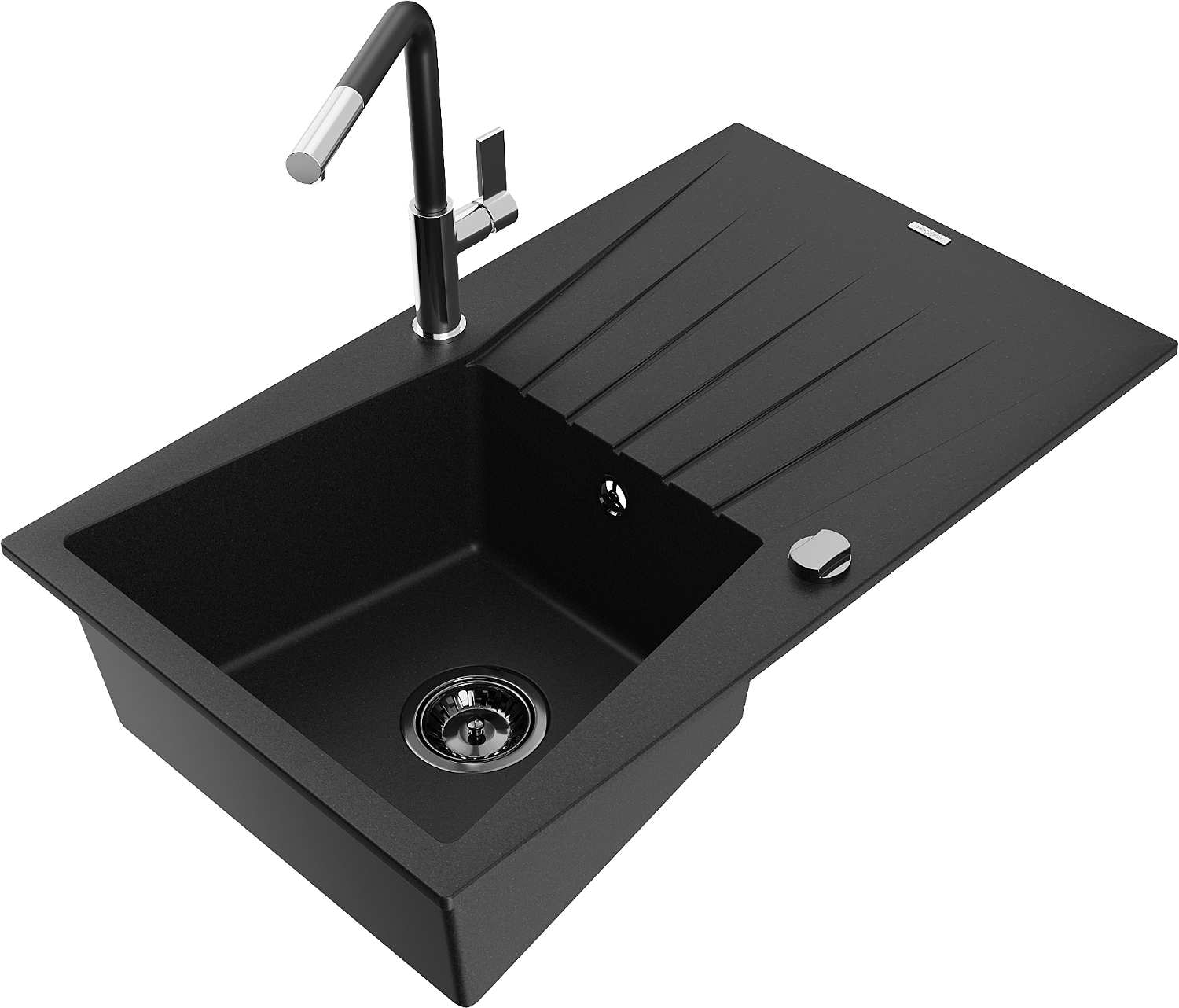A mosogató magas minőségű gránitból készült. Elegáns, de mindenekelőtt praktikus kiegészítője minden konyhának, függetlenül annak stílusától. A gránit magas minősége és tartóssága hosszú távú használatot biztosít.