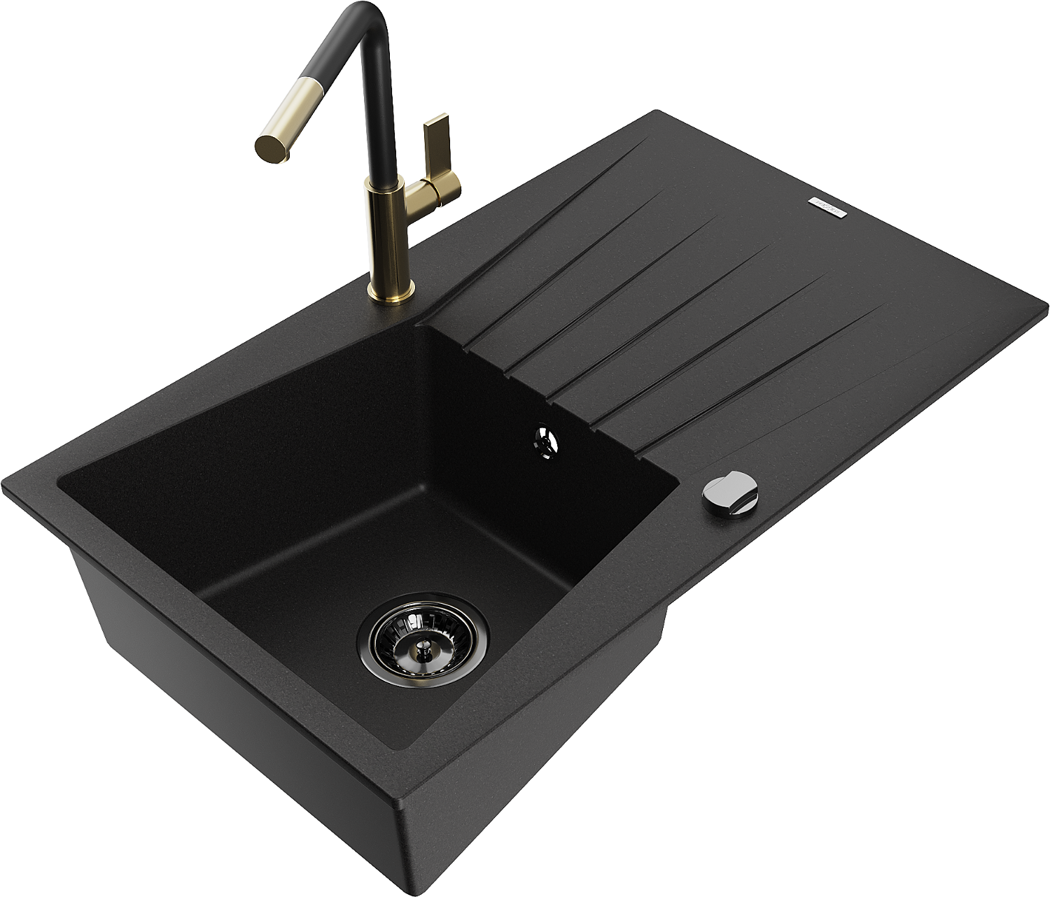 Mexen Cesar gránit mosogató 1-medencés lefolyóval és Flora konyhai csapteleppel, fekete - 6514-77-670401-57-B