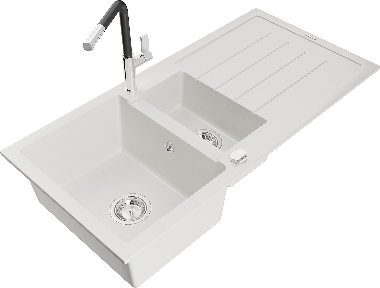 Mexen Andres gránit mosogató 1,5 kamrás csepegtetővel és Flora konyhai csapteleppel, fehér - 6515-20-670401-07