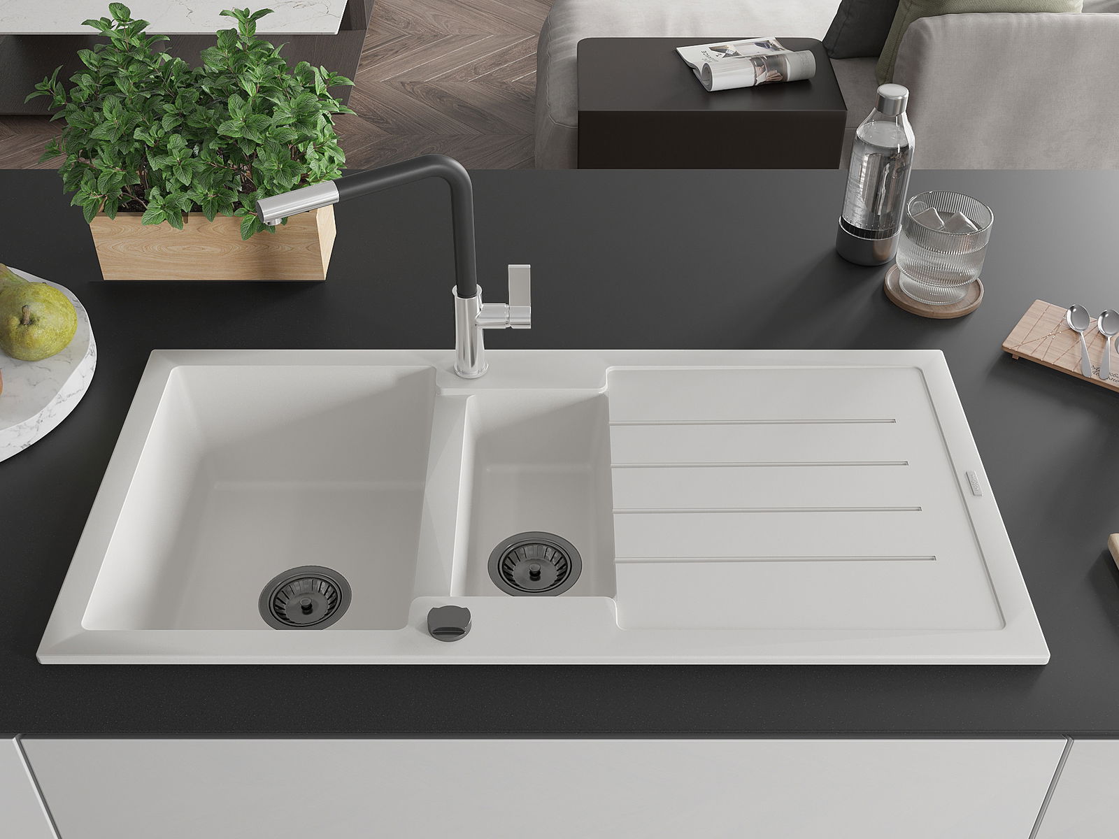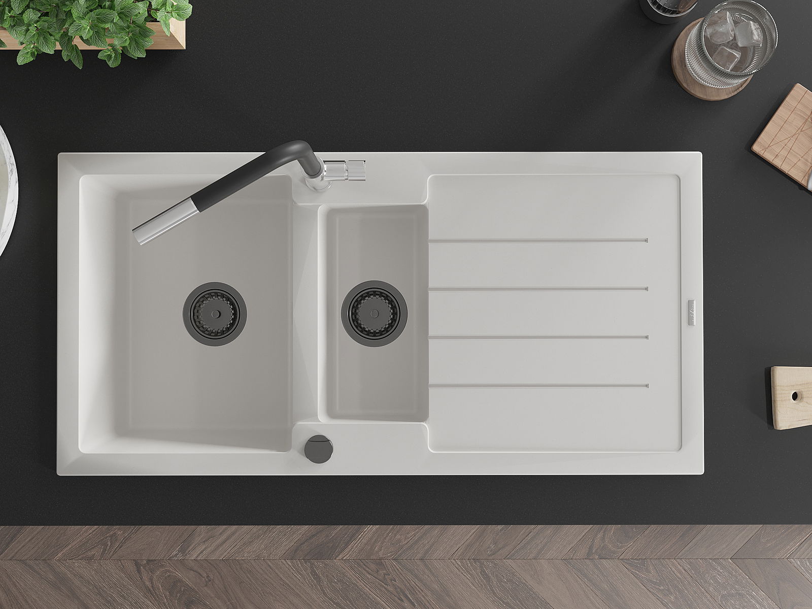 A mosogató felülete ellenáll a foltoknak és a elszíneződésnek, amelynek köszönhetően könnyű megtisztítani és hosszú ideig megtartja színét. Esztétikai és gyakorlatilag kiegészítve minden konyhát.